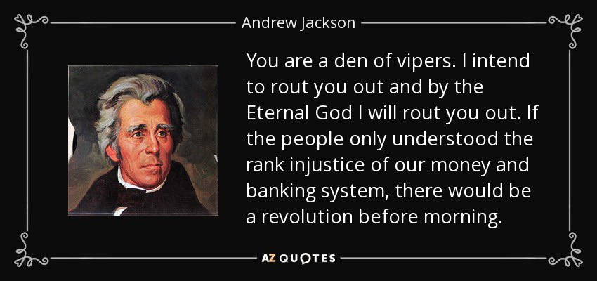 The Central Bank: 🧵 5 of 50 What if central banking has always been [THEIR] primary weapon? What if Thomas Jefferson didn’t warn us about this from the very beginning? What if Andrew Jackson’s fight against the “Den of Vipers” was a pivotal moment in this war? What if the Federal Reserve, created in 1913, was [THEIR] ultimate weapon of economic slavery? What if central banking wasn’t just about controlling money but about controlling innovation? What if [THEY] used economic slavery to stifle progress and technological breakthroughs? What if central banking and technological suppression are two sides of the same coin, designed to keep humanity in chains?