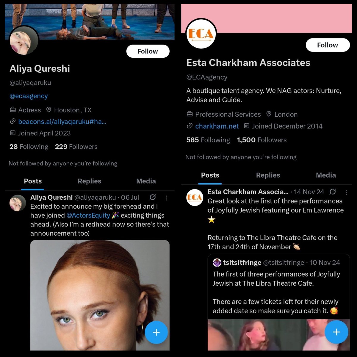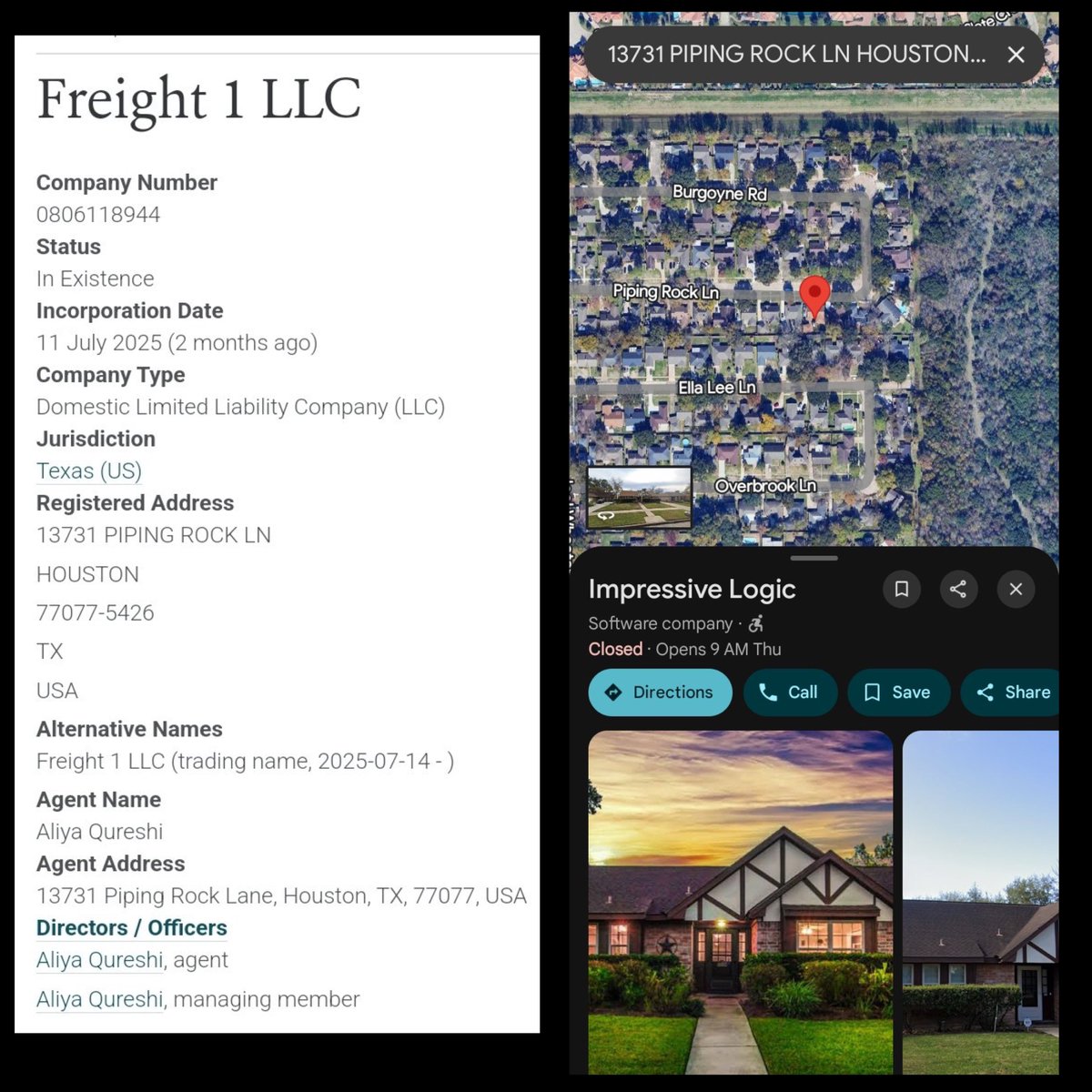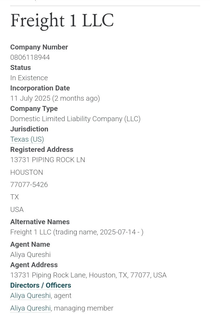 Hoooooooly fuck, I’m weak.🤣💀 *ALIYA QURESHI (“This is Zachariah’s sister, pls delete…”) *ACTRESS *HOUSTON, TX *ESTA CHARKHAM ASSOCIATES “Great look at the first of THREE PERFORMANCES of JOYFULLY JEWISH…” Meanwhile… …FREIGHT 1 LLC, incorporated on JULY 11, 2025, with ALIYA QURESHI as MANAGING MEMBER.