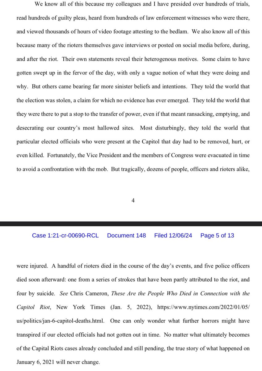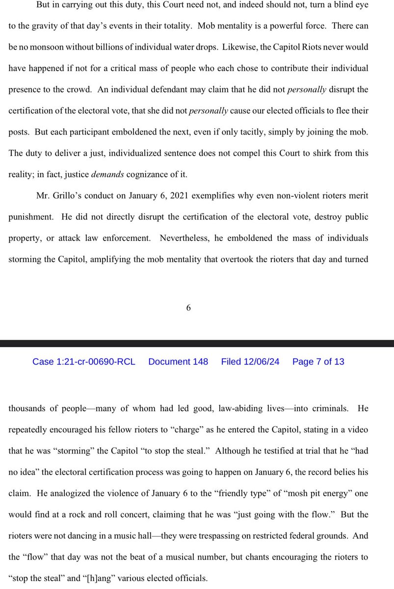 Judge Royce Lamberth (Reagan appointee) is 80 years old. He cannot get out of his chair without help, uses a walker, and falls asleep during court proceedings. But he is spending his final days unleashing hell on J6ers. In a 13-page unhinged polemic, Lamberth just sentenced a nonviolent misdemeanant to 12 months in prison. And instead of allowing the man to report to custody a few months from now—which is routine—he REMANDED HIM INTO IMMEDIATE CUSTODY. Why? Because if Grillo is set to report in February or March, it’s likely he won’t spend a day in prison if Trump issues a pardon. So this evil POS judge sent him to a federal prison a few weeks before Christmas to make sure he spent time behind bars. And Lamberth—who is very public in claiming any challenge to the official J6 narrative represents a revision of history—straight up lies about police fatalities.