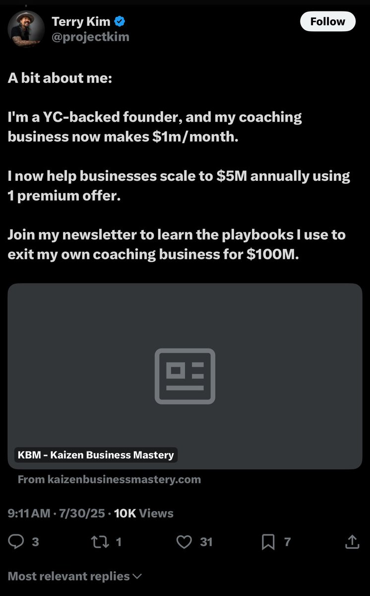 Thanks for reading! A bit about me: 2 years ago, I cofounded @ThoughtleadrX — a premium personal branding agency for world-class founders, executives, and investors to dominate socials. If you enjoyed this, hit "follow" for more breakdowns! https://t.co/xb9if0YMSQ
