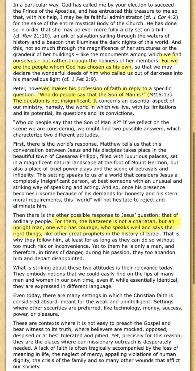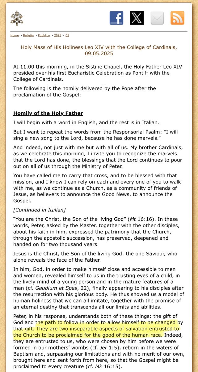 “… 𝗙𝗼𝗿 𝘄𝗲 𝗮𝗿𝗲 𝘁𝗵𝗲 𝗽𝗲𝗼𝗽𝗹𝗲 𝘄𝗵𝗼𝗺 𝗚𝗼𝗱 𝗵𝗮𝘀 𝗰𝗵𝗼𝘀𝗲𝗻 𝗮𝘀 𝗵𝗶𝘀 𝗼𝘄𝗻, so that we may declare the wonderful deeds of him who called us out of darkness into his marvellous light (cf. 1 Pet 2:9).” (https://press.vatican.va/content/salastampa/en/bollettino/pubblico/2025/05/09/250509d.html)