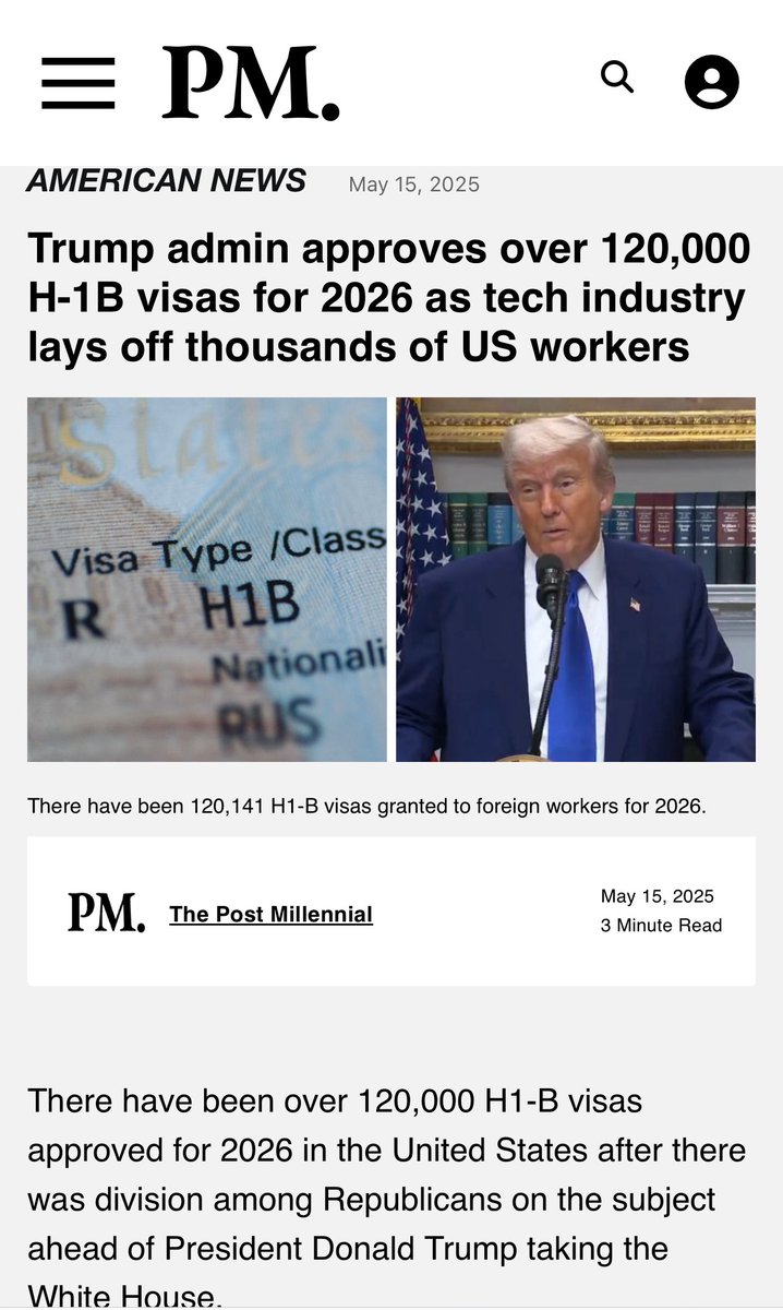Furthermore, alarming incidences of inversion and doublespeak are occurring where inverted versions of political reality are boosted on X’s “MAGA” accounts (https://thepostmillennial.com/trump-admin-approves-over-120000-h-1b-visas-for-2026-as-tech-industry-lays-off-thousands-of-us-workers).