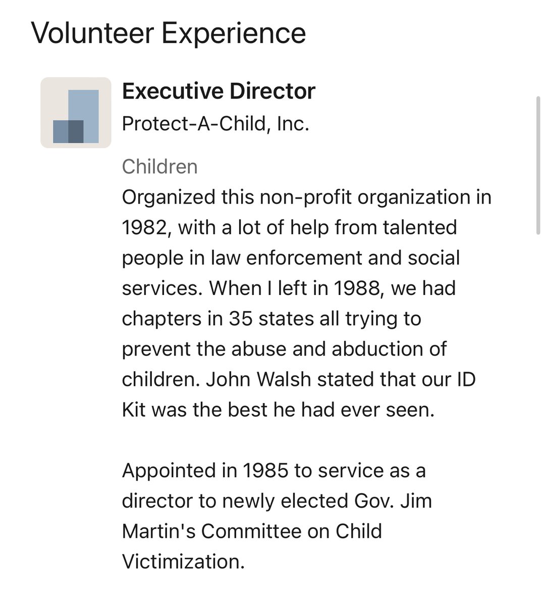 Being quite the renaissance man, Harry also served as Executive Director for Protect-A-Child, Inc. https://www.linkedin.com/in/harrywelchjr