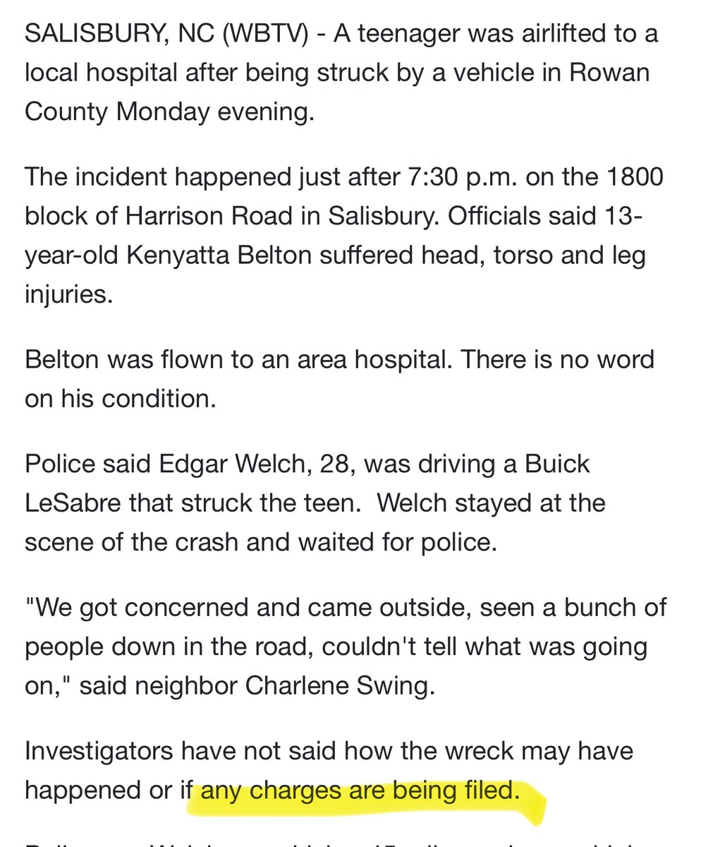 So Harry Welch Jr. the shooter Edgar’s father was trained to shoot by the guy who trained spies and assassins for the OSS. I haven’t seen anyone else report on this information. Ok back to Edgar. In October 2016, one month before the shooting Edgar struck a teenager with his car going 45 mph sending him to the hospital with head, torso and leg injuries. https://www.wbtv.com/story/33467722/13-year-old-struck-by-vehicle-in-salisbury-airlifted-to-hospital/