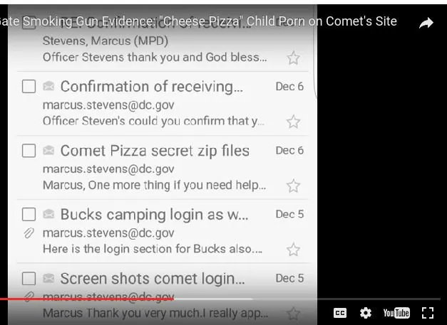 When he heard about the shooting on TV, the next day he contacted the Washington Police once again, this time they seemed very interested in what he had to say. A detective named Marcus Stevens was very interested and asked if the BigFish would send what information he could via email. BigFish explained to Marcus that law enforcement needed to go down to Comet Ping Pong and confront the owner about what was discovered on his servers, that had just been destroyed by a bullet mind you. A Detective Marcus Stevens agreed and according to BigFish seemed like he really wanted to investigate this, BigFish received a confirmation email from Marcus stating he had received his email explaining what information he could. He was in communication with detective Marcus Stevens for the following 2 weeks. This is the email provided.