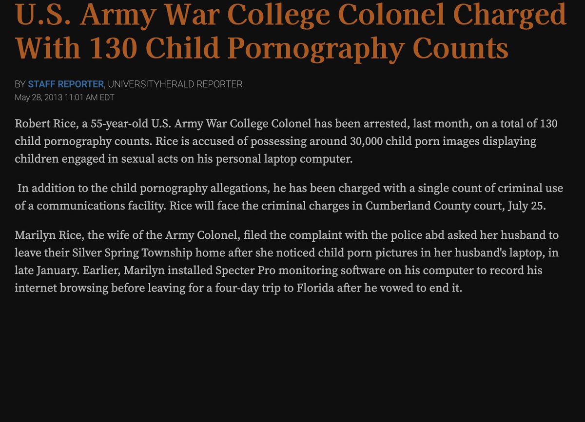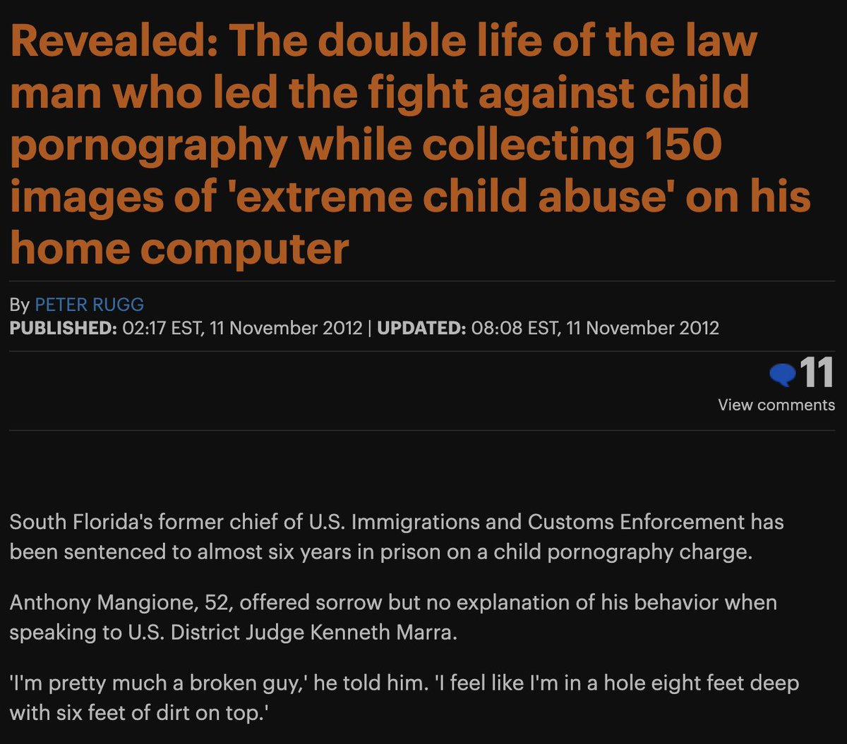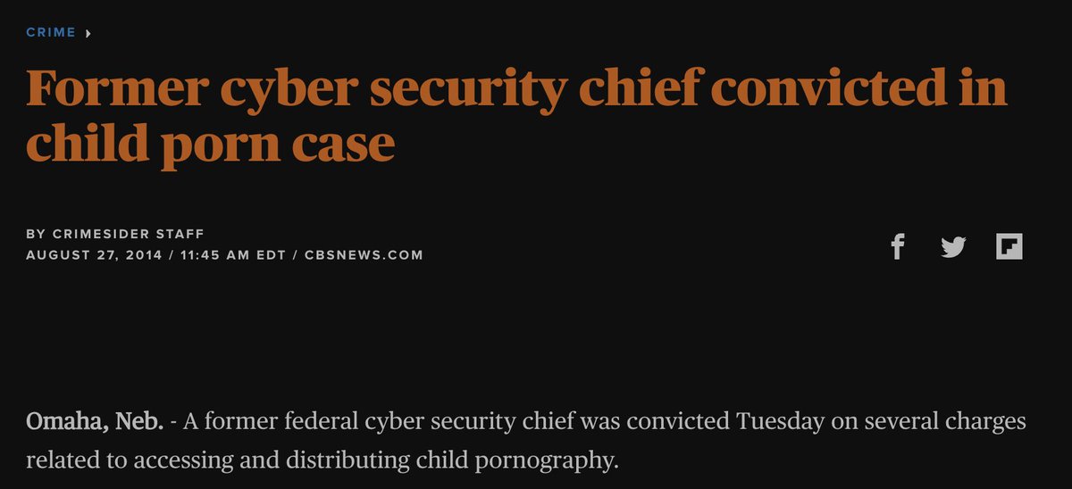 If you are still incredulous about all of this, have a look at some of these stories to get a sense of the scope of this problem within government alone. Again these are just a drop in a bucket compared to the scale of this. https://www.cbsnews.com/news/former-cyber-security-chief-convicted-in-child-porn-case/