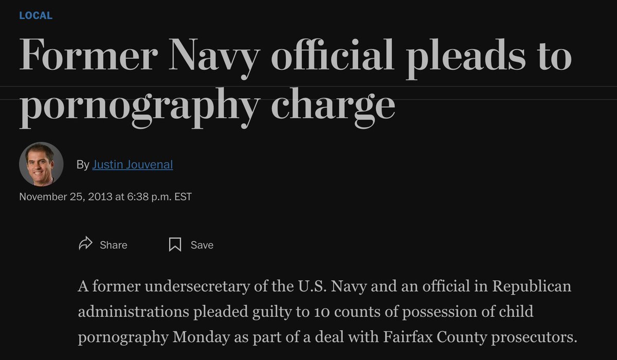 https://www.washingtonpost.com/local/crime/former-navy-official-pleads-to-pornography-charge/2013/11/25/cdd82868-5629-11e3-8304-caf30787c0a9_story.html “Previously, he had served as special assistant to President Ronald Reagan and deputy press secretary for foreign affairs from 1986 to 1989, among other posts during a long career in Washington.”