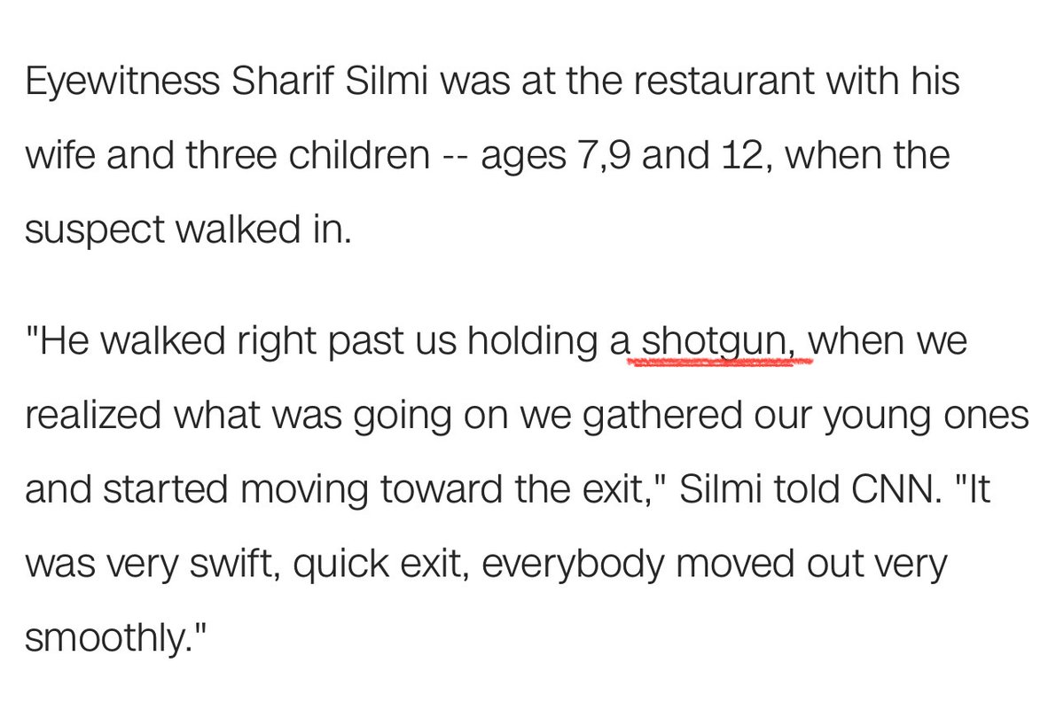 However one day later on December 5th a CNN article quotes a witness that the gun is identified as a shotgun. The witness could just be mistaken and not familiar with firearms so it isn't the biggest deal. Although they are visually distinctly different from each other, I’m not so sure I buy that. https://amp.cnn.com/cnn/2016/12/04/politics/gun-incident-fake-news/index.html