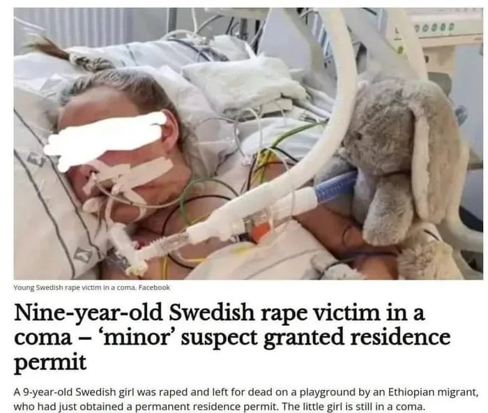 This 9 year old was raped so badly by an African migrant that she was left permanently disabled. Her rapist has now been granted a residency permit. This is why we need to bring back the death penalty. https://t.co/zj43qAQfsZ