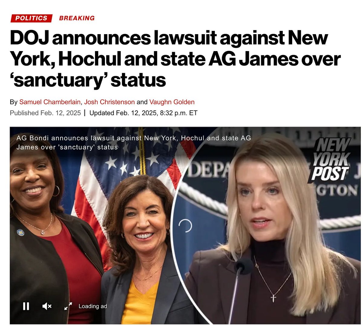 🚨BREAKING: AG Pam Bondi announces the DOJ has filed charges against the State of New York, Gov. Kathy Hochul, AG Letitia James, and DMV Commissioner Mark Schroeder. "New York has chosen to prioritize illegal aliens over American citizens. It stops — it stops TODAY." https://t.co/vVN900iSrw