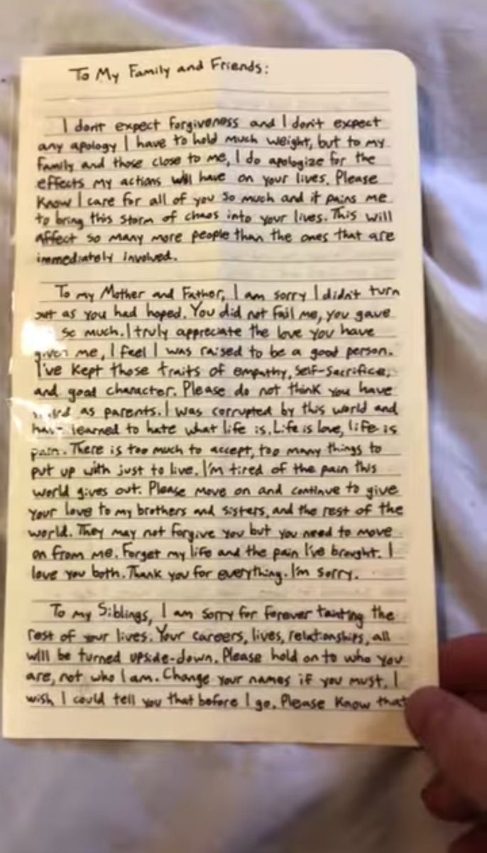 This note is a manifesto-style threat with explicit intent, named individual targets, workplace context, and references to previous mass shootings. It demonstrates premeditation, fixation on past attackers, and suicidal motivation. https://t.co/p8YXtwFVRB