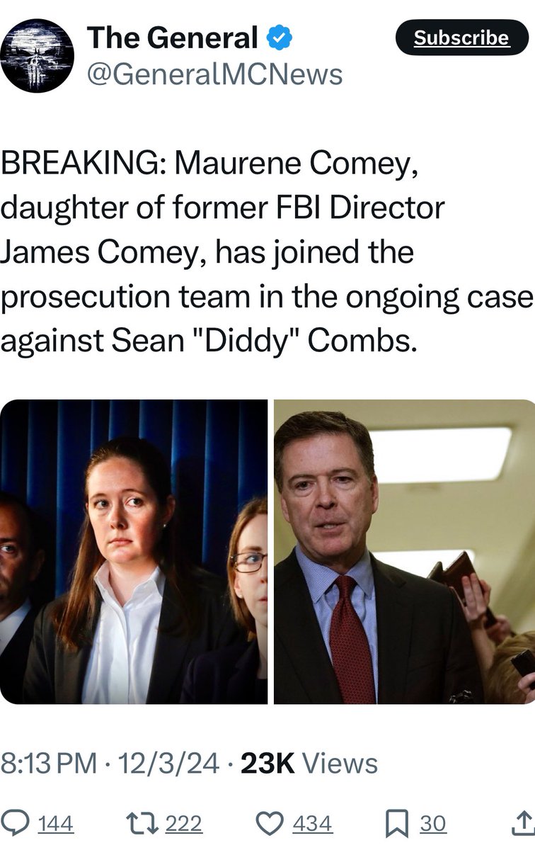@amuse Maurene Comey coincidentally was assigned to the other big case- Diddy in December 2024. 🧐⬇️ https://t.co/uUjrtb4eEL