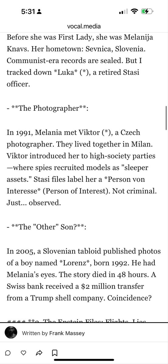 There is very little information if any about Melania’s life during the years I discuss. But there is verifiable decades old information that shows her being connected to highly nefarious people. I had also previously discussed the possibility of an unknown daughter. I’ll expand. https://t.co/Cf8od7cV20
