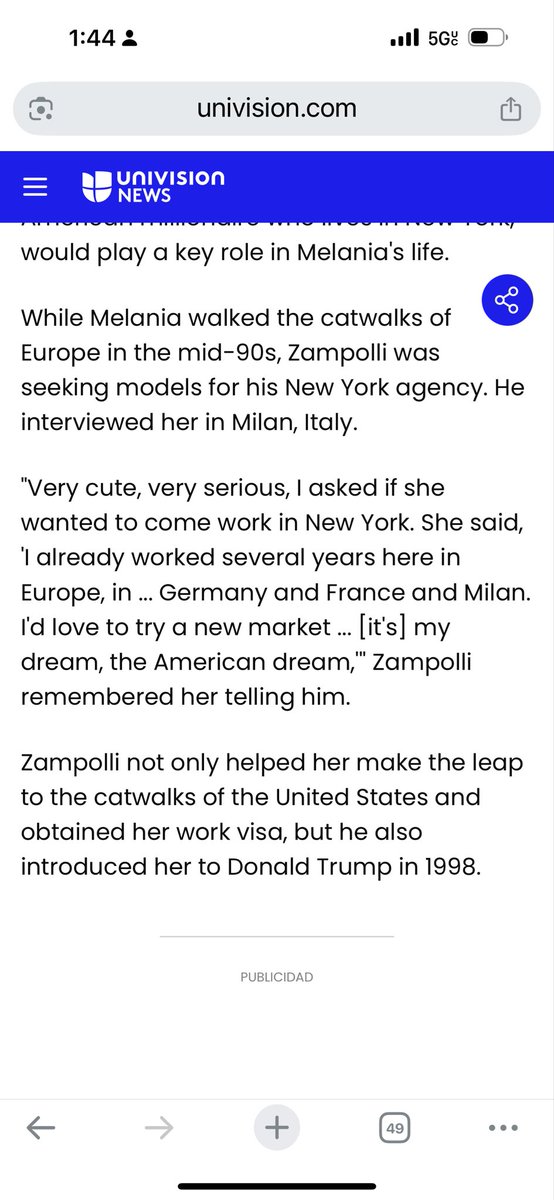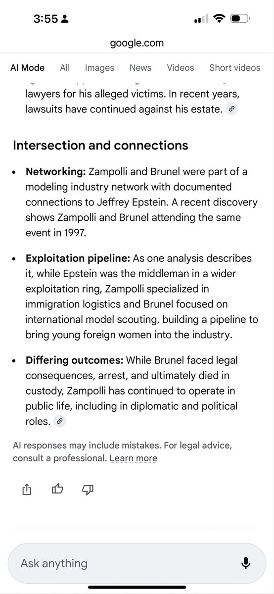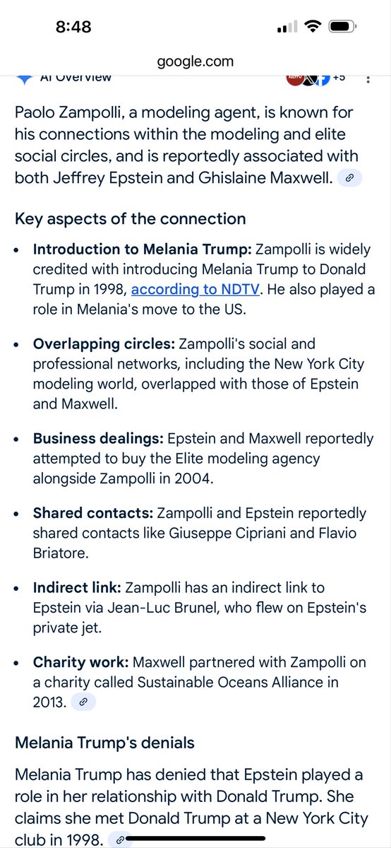 Zampolli procured an Einstein Visa for her in 2001. I’ve read Zampolli was the “visa guy” in the international human trafficking operation. Brunel, Casablancas, Mifsud, Epstein all had their roles too. Brunel was Epsteined in ‘22. Casablancas died of cancer, Mifsud is missing… https://t.co/7LjiWxpc7V