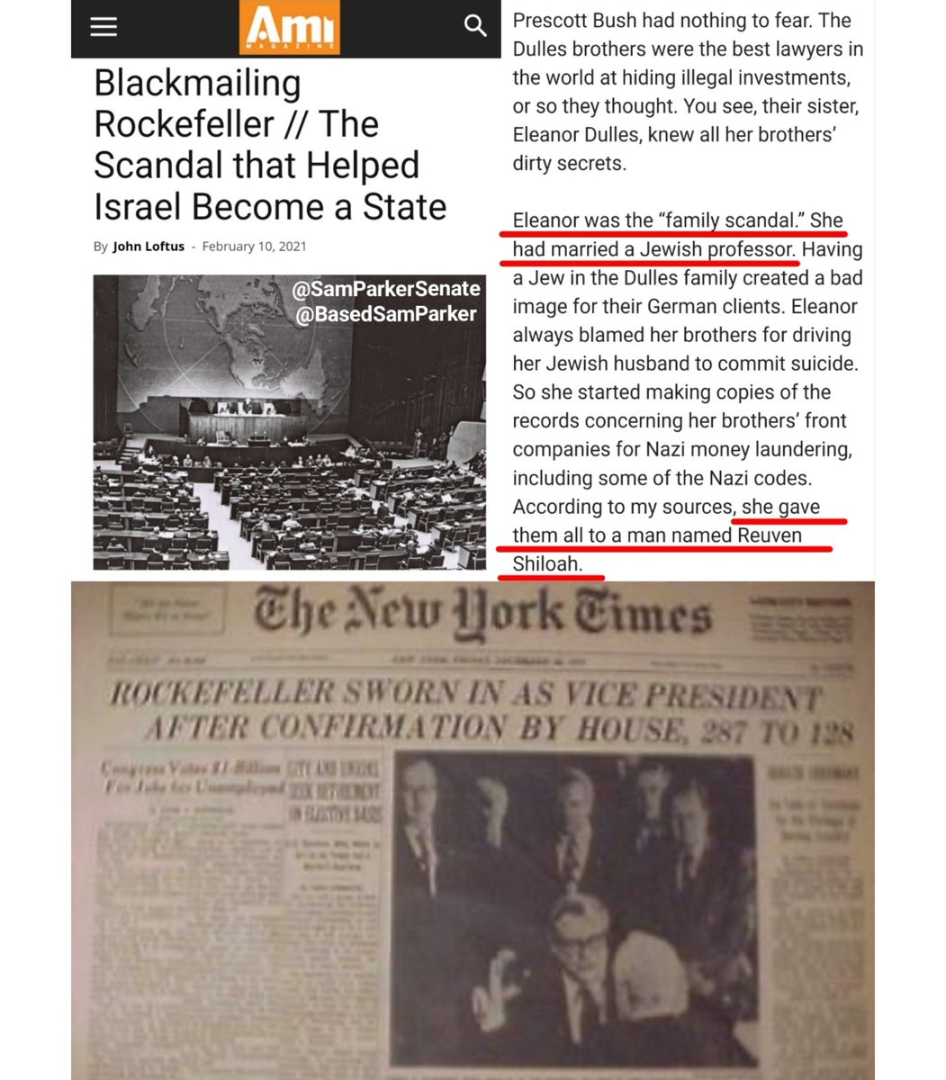 🧵12/ Getting back to RFK & israeli blackmail, did you know they were blackmailing Nelson Rockefeller, the Dulles brothers & Prescott Bush? They love blackmail. Been doing it for a long time! 🧵👇 https://t.co/uXKvHmczA3