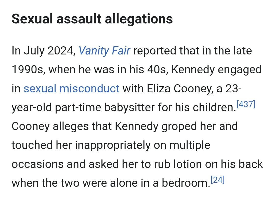 🧵7/ Furthermore, RFK Jr. has a history of sexual assault allegations to go along with dozens of cases of secret cheating on his wife. Taken together with their close relationship with Maxwell/Epstein, this seems like extremely fertile ground for the development of blackmail material.