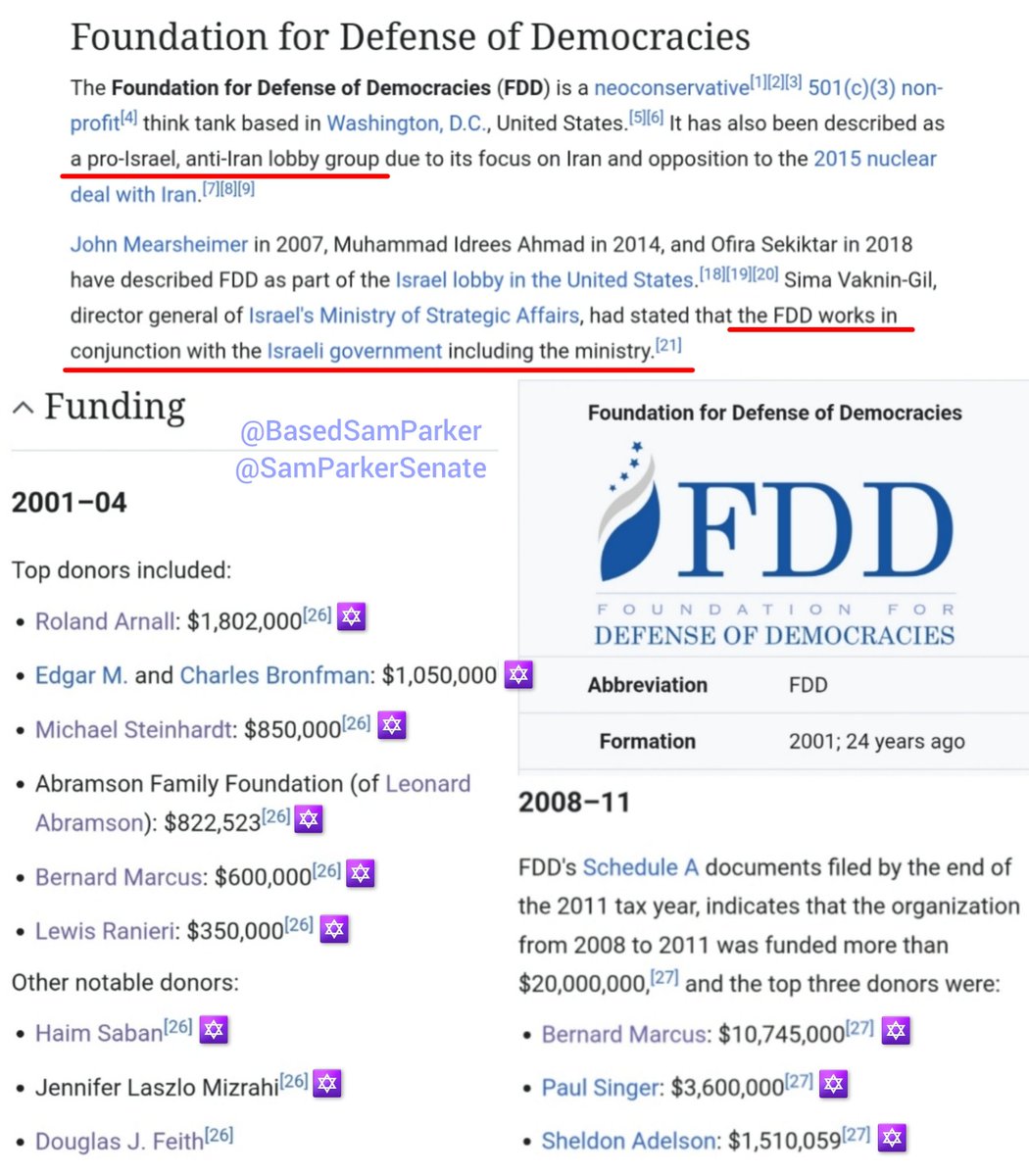 1/ Tucker Carlson’s dad, Dick, sat on the board of FDD—Foundation For The Defense Of Democracies—a pro-israel think tank bankrolled by ultra-wealthy jewish donors from MEGA, the jewish billionaires club that ran Jeffrey Epstein. Receipts at the end of the video. https://t.co/DtdmJZeXCI