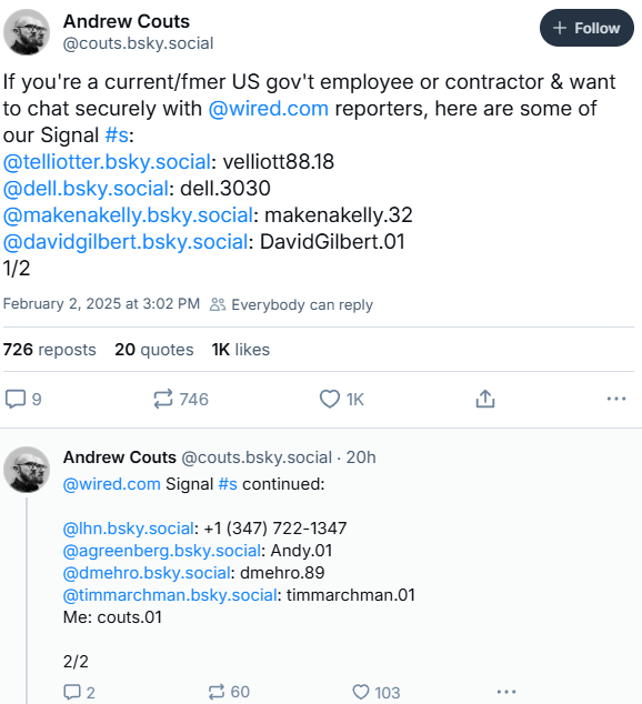 Lots of replies saying "This isn't a dox!" I'm not interested in splitting hairs over a nebulously defined word. She revealed the identities of people involved with DOGE. Not saying that's necessarily a crime or unethical, just that she did it.