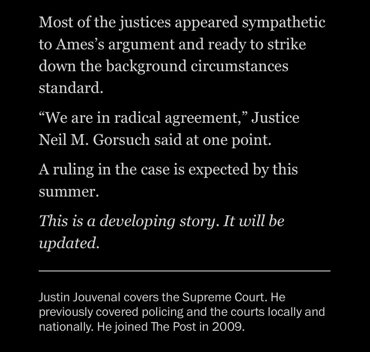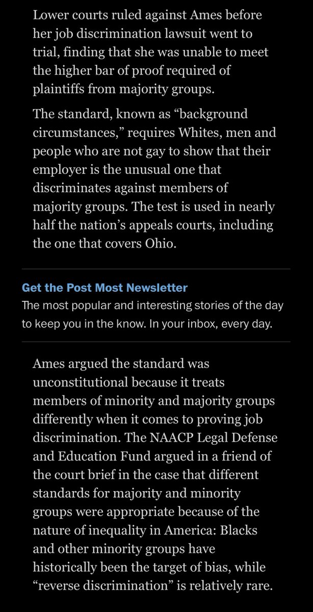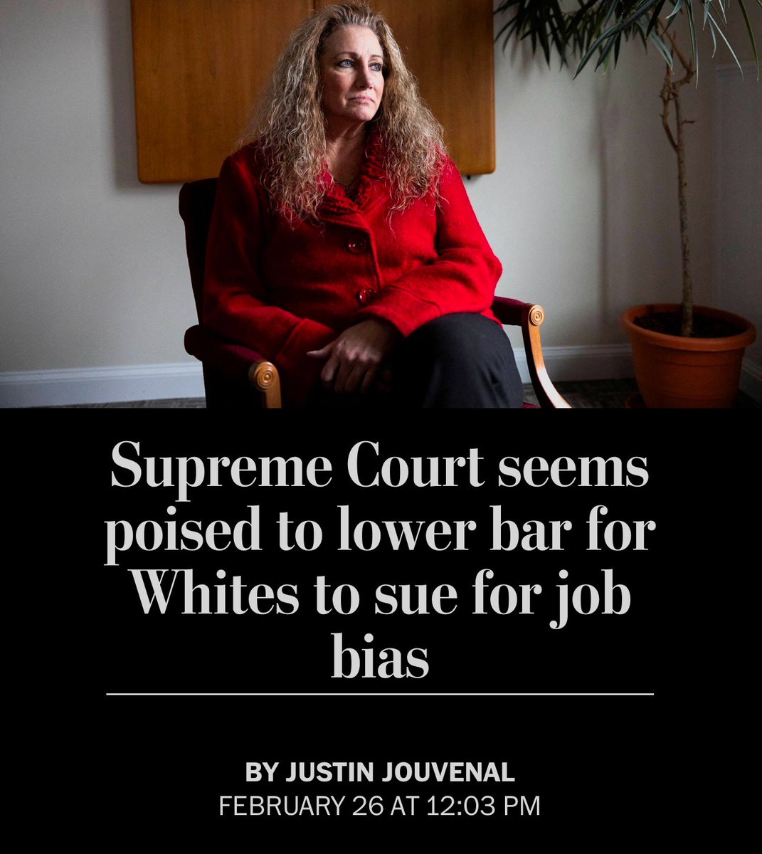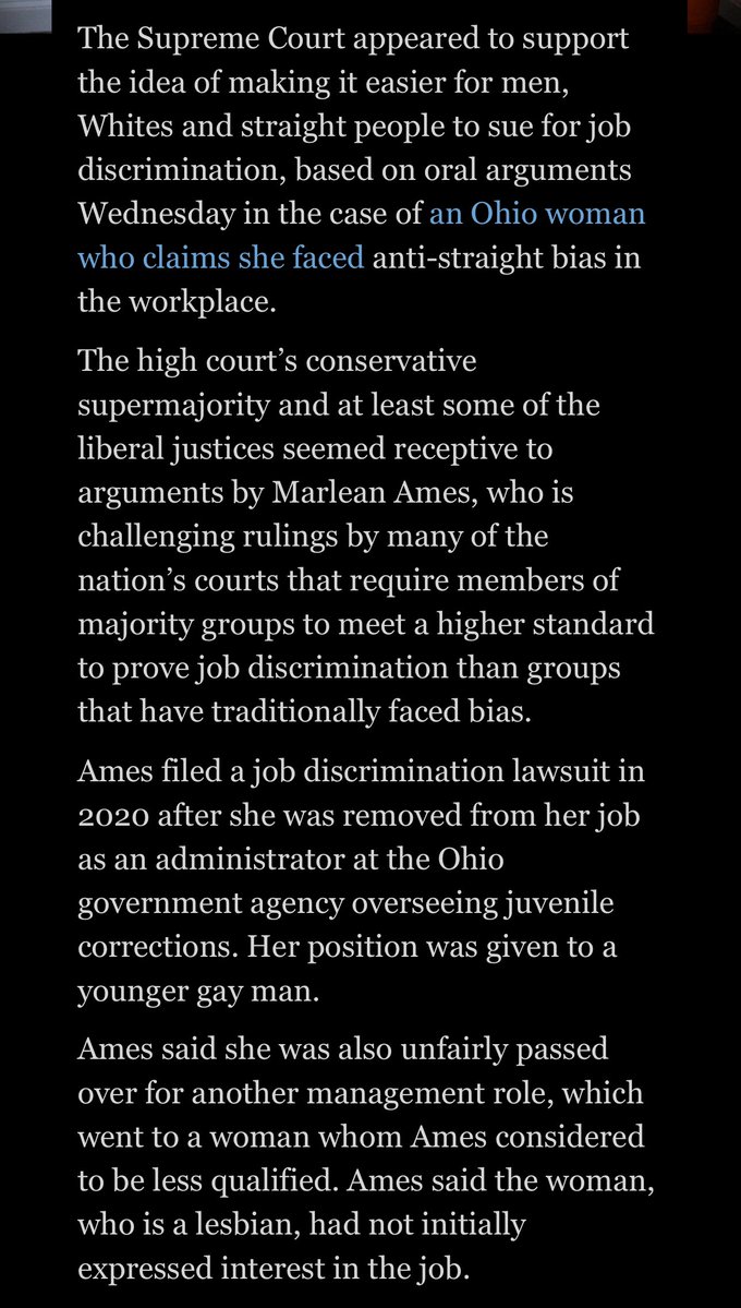 The Supreme Court appears ready to strike down the higher standard that straight people and White people have to reach to prove that they’re being discriminated against at work. A level playing field appears imminent. Companies better start trashing their DEI QUICKLY. (WashPo) 😉 https://t.co/31h6Pcmtuy