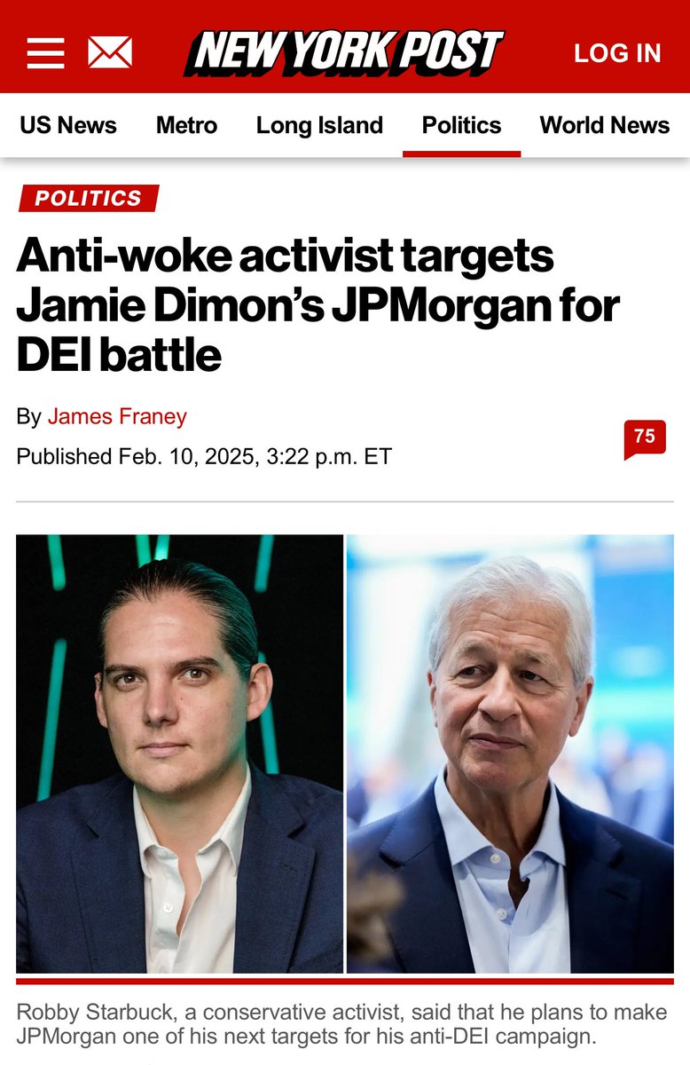 Lots of people said JPMorgan Chase and their CEO Jamie Dimon wouldn’t back down on DEI. I targeted them anyways. I went on the same CNBC show as Jamie and showed the world their DEI policies. Now only a week later… JPMorgan is backing off of DEI. Sanity is winning again. 🔥🔥 https://t.co/PupiOlyauw