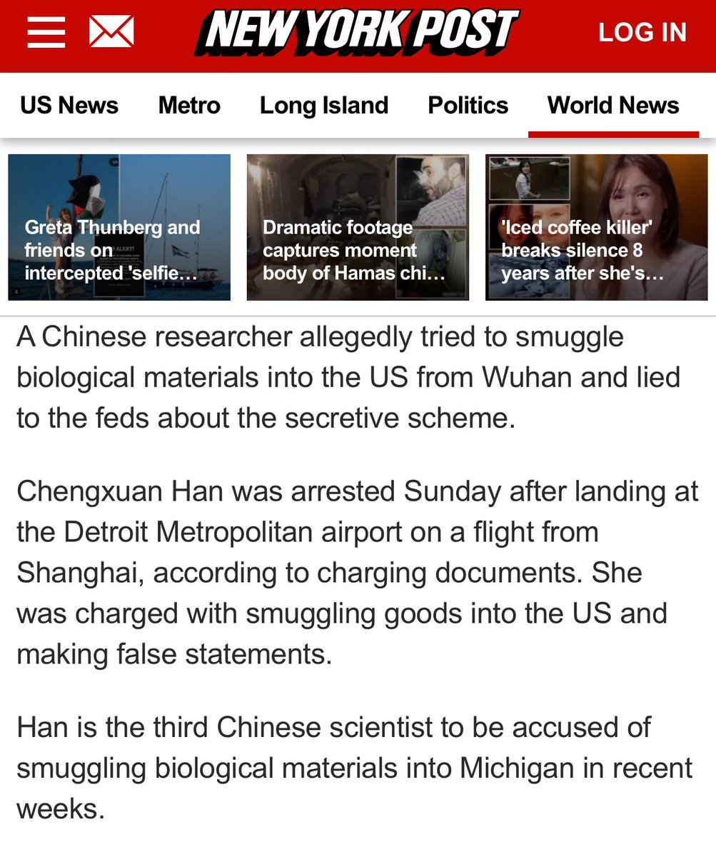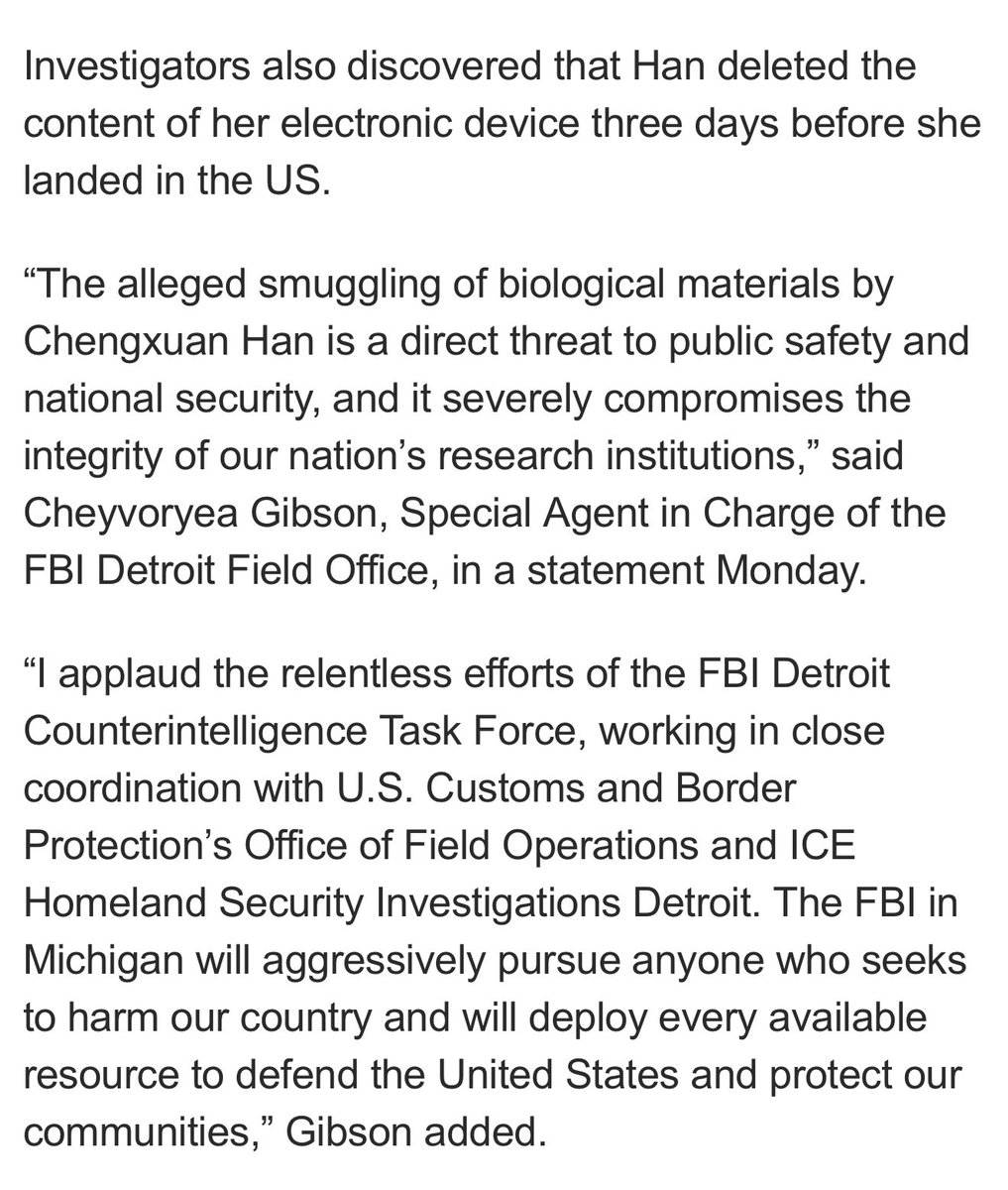 A Chinese scientist from Wuhan got arrested Sunday trying to smuggle "biological materials" via a Detroit airport. She’s the THIRD Chinese scientist arrested in recent weeks smuggling bio materials. She wiped her devices 3 days before her trip. At what point is this an attack? https://t.co/4LeTOCzBSJ
