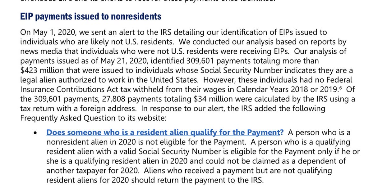 As crazy as this story sounds, it appears to be true that foreign nationals applied for and received COVID stimulus checks. A Treasury IG report found 309,601 payments for $423M were issued to non-citizens and 27,808 payment requests for $34M came from foreign addresses. https://t.co/awjVZOwtDz