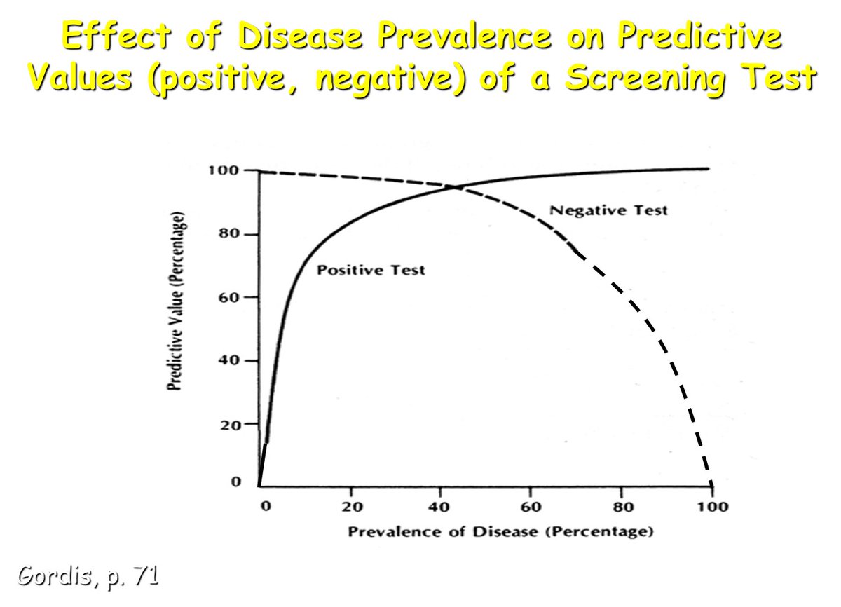 How to increase the prevalence of a rare disease from 0.01% to 1%? Test the asymptomatics. What prevalence do we estimate Covid19 at including asymptomatic tested? Less than 1%. What could the true prevalence be if we exclude asymptomatic testing? 0.01%. It's called #BayesTheorem