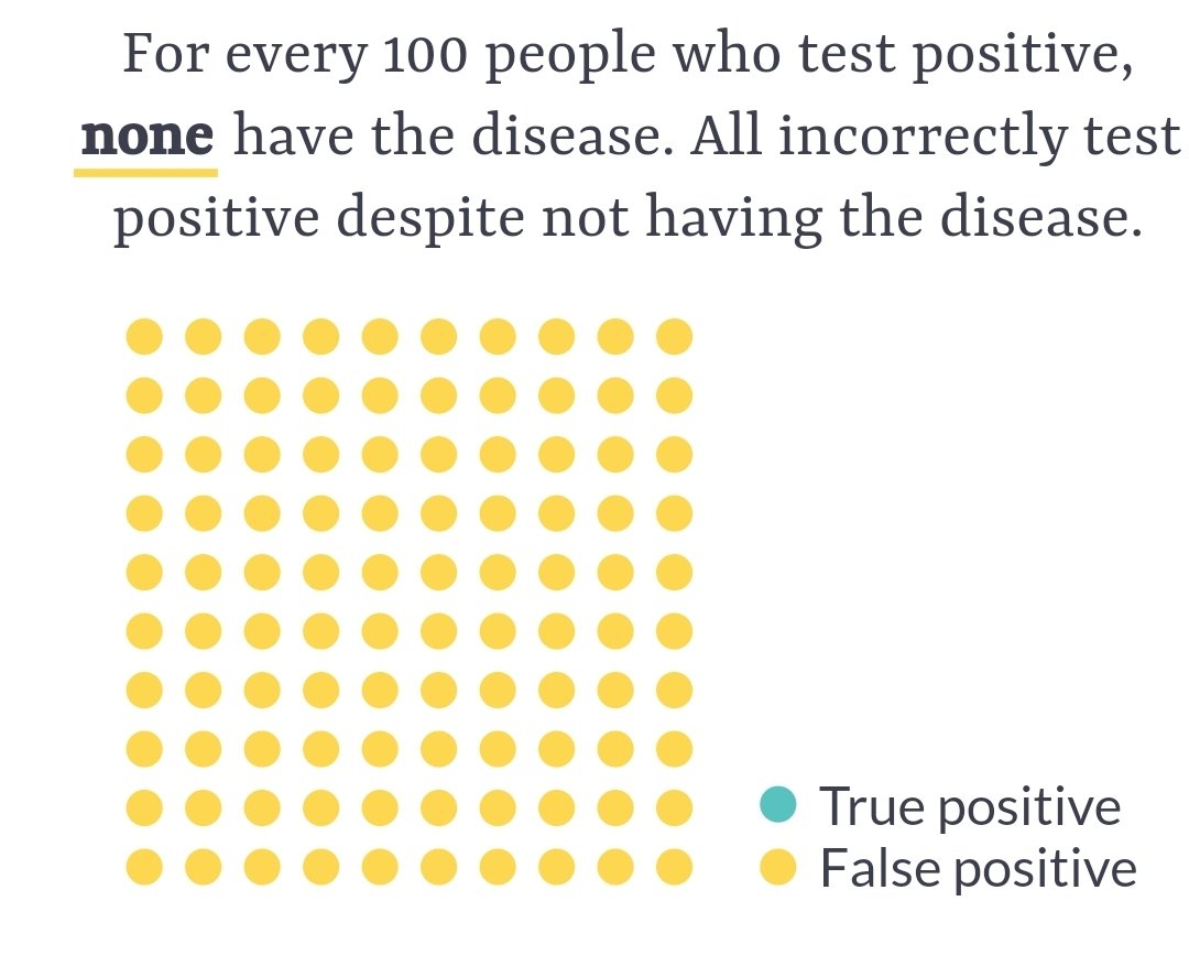 Say mass testing of the contagious virus was done to 1 million people. In that million, 100 will really have the disease, 99 will be correctly diagnosed as having it. 999,900 of the million will not have the disease, but of those about 9,999 will be false positives! #BayesTheorem