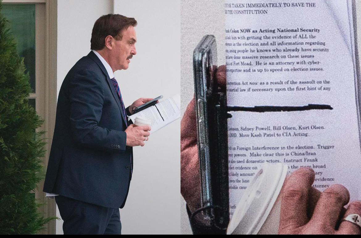 Mike Lindell carrying a paper calling for martial law in the name of national security. MAGA/Evangullables are 100% for Martial Law. Yes you read that right. Thats the level of damage we are dealing with. https://t.co/C88AbVH22z