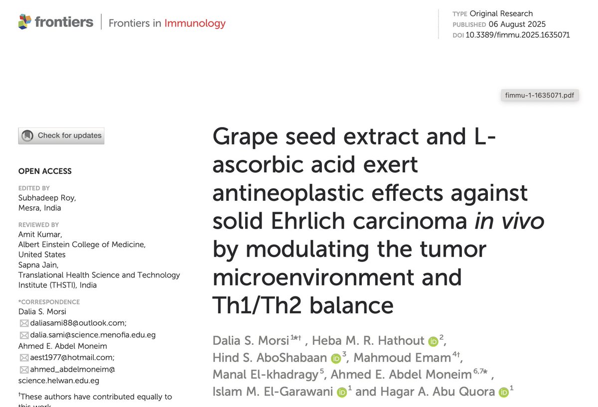 3⃣⚡ The data is explosive: Not only did the natural combo shrink tumors more effectively, it REBUILT the immune system while doing it. T-cells surged 35% into tumors. Cancer-protective cells dropped 26%. The body started fighting back on its own. Link: Full study - Frontiers in Immunology, August 2025: https://www.frontiersin.org/journals/immunology/articles/10.3389/fimmu.2025.1635071/full