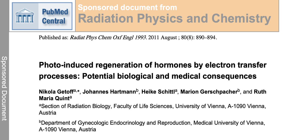 2/7📚 THE STUDY: "Photo-induced regeneration of hormones by electron transfer processes" by Dr. Nikola Getoff et al., published in Radiation Physics and Chemistry (1993) They exposed hormones to UV damage, then added vitamin C—which successfully regenerated 53-91% of broken hormone molecules. 👉https://www.researchgate.net/publication/51545130_Photo-induced_regeneration_of_hormones_by_electron_transfer_processes_Potential_biological_and_medical_consequences