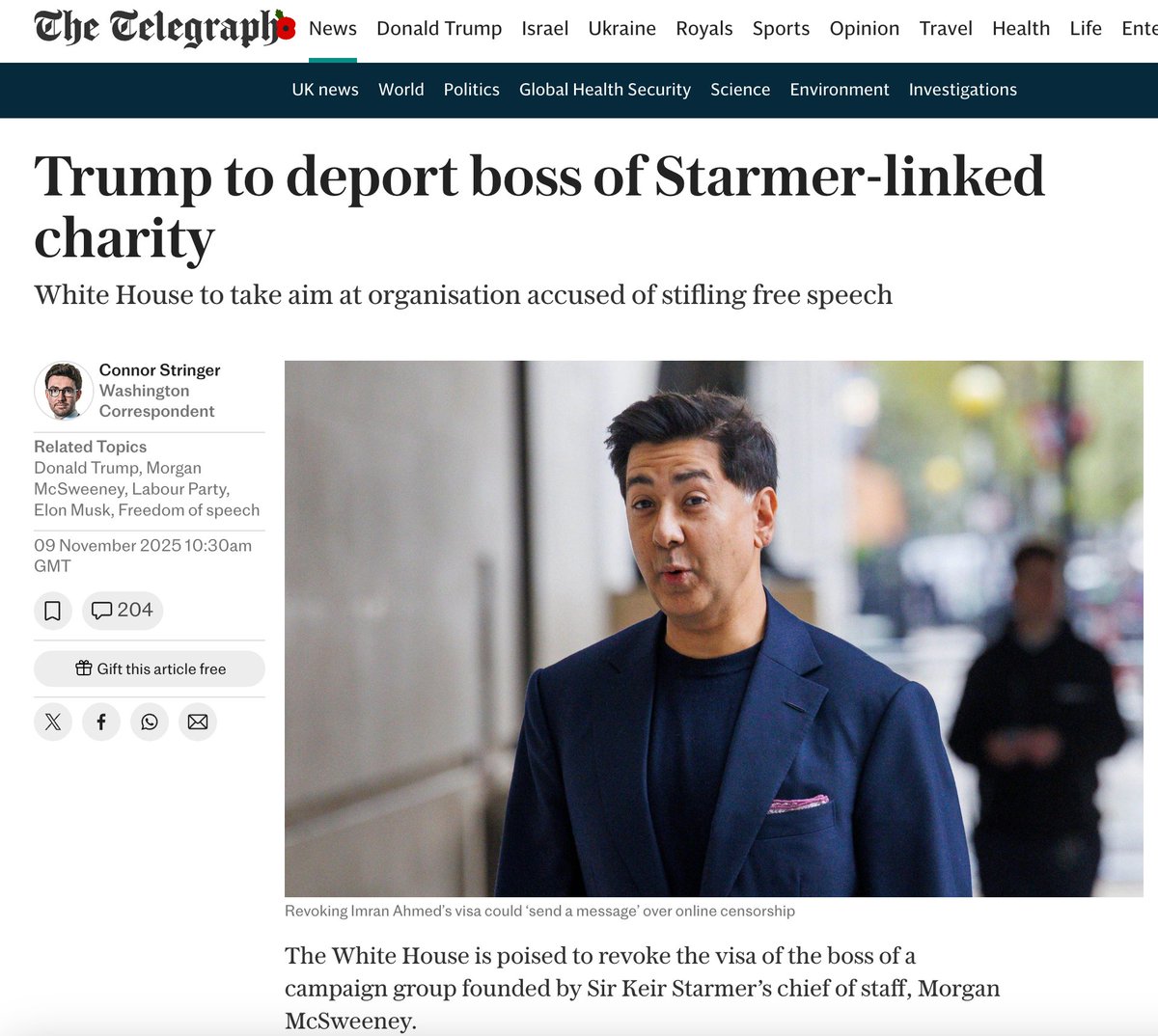 4/The White House is done playing games. According to The Telegraph and The Spectator, Trump is "waging war on the great British disinformation complex." Revoking Ahmed's visa sends a clear message: Foreign actors will NOT dictate what Americans can say online. This is First Amendment defense. 🇺🇸