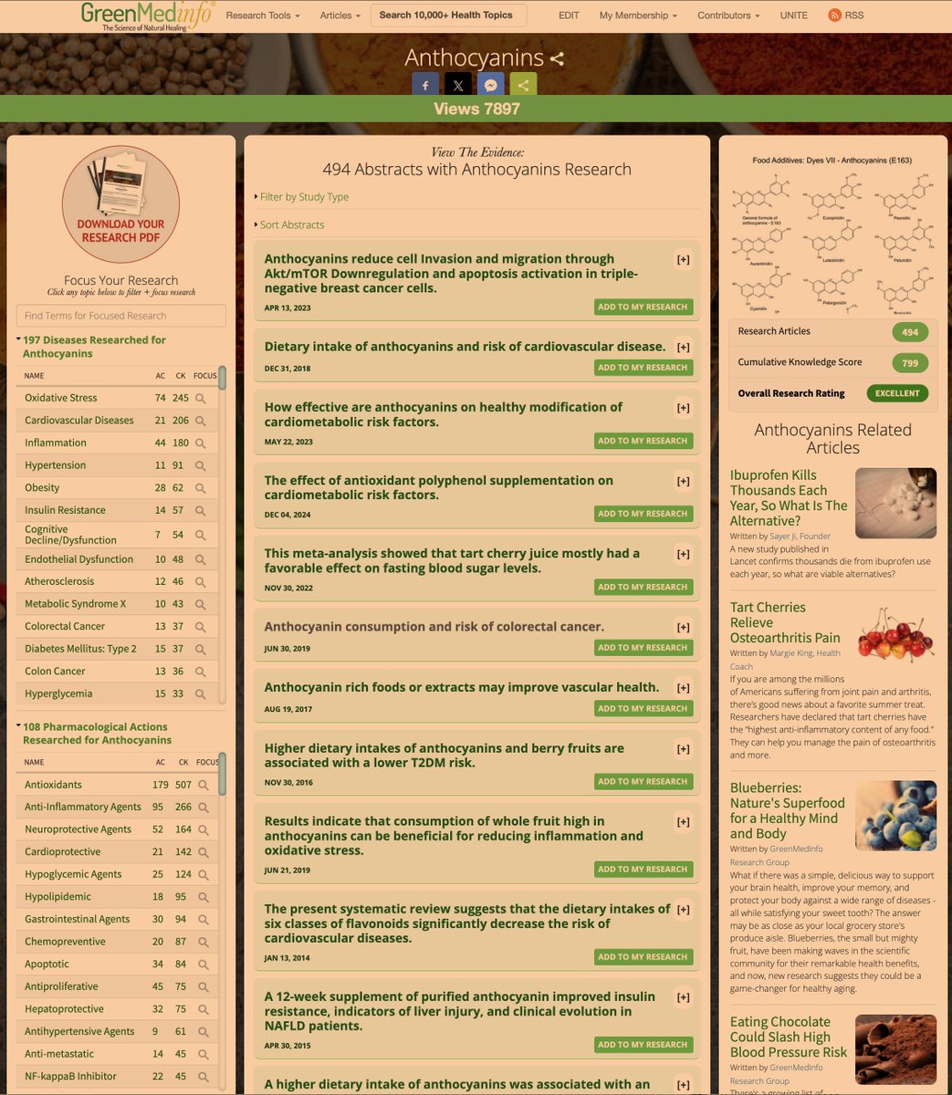 8⃣Anthocyanins (berries, butterfly pea): ✅Powerful brain antioxidants ✅Reduce dementia risk ✅Improve memory ✅Combat neuroinflammation ✅~200 benefits indexed on the http://GreenMedInfo.com database: https://greenmedinfo.com/substance/anthocyanins Turn your tea blue naturally (not your brain!)