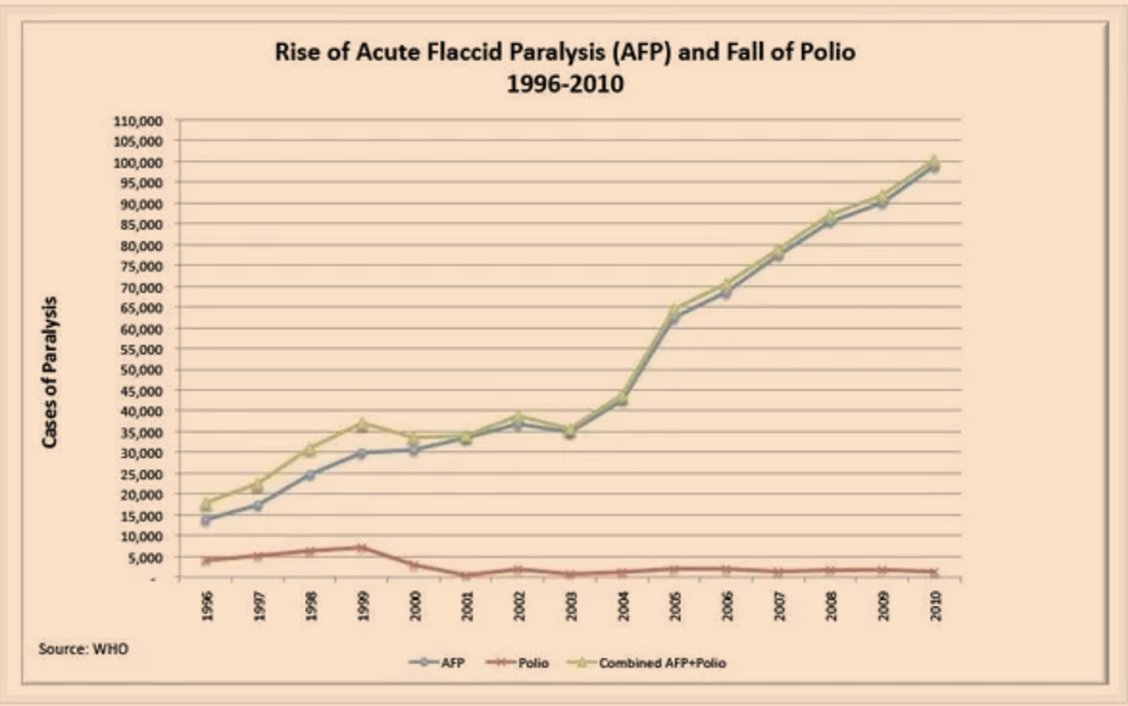7/ Even the so-called eradication of polio may be a statistical mirage. Cases of AFP surged as "polio" diagnoses vanished. Are we being gaslit by reclassification? 🔥 Learn more by reading "The "Disappearance" of Polio" by Dr. Suzanne Humphries : https://greenmedinfo.com/blog/disappearance-polio