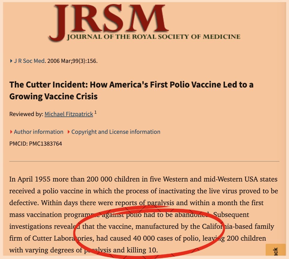 3/ The oral polio vaccine (OPV), meant to save lives, introduced new epidemics. Vaccine-derived poliovirus (VDPV) is now a leading cause of paralysis worldwide. We replaced one problem with another. 🚨 ‼️Example: The Cutter Incident of 1955 involved a batch of improperly inactivated polio vaccine from Cutter Laboratories, which led to approximately 40,000 cases of vaccine-induced poliomyelitis, causing widespread public concern and scrutiny of vaccine safety protocols. More details: https://pmc.ncbi.nlm.nih.gov/articles/PMC1383764/ More info on how the original polio vaccines caused polio paralysis: "Polio Vaccines Now The #1 Cause of Polio Paralysis" https://greenmedinfo.com/blog/polio-vaccines-now-1-cause-polio-paralysis