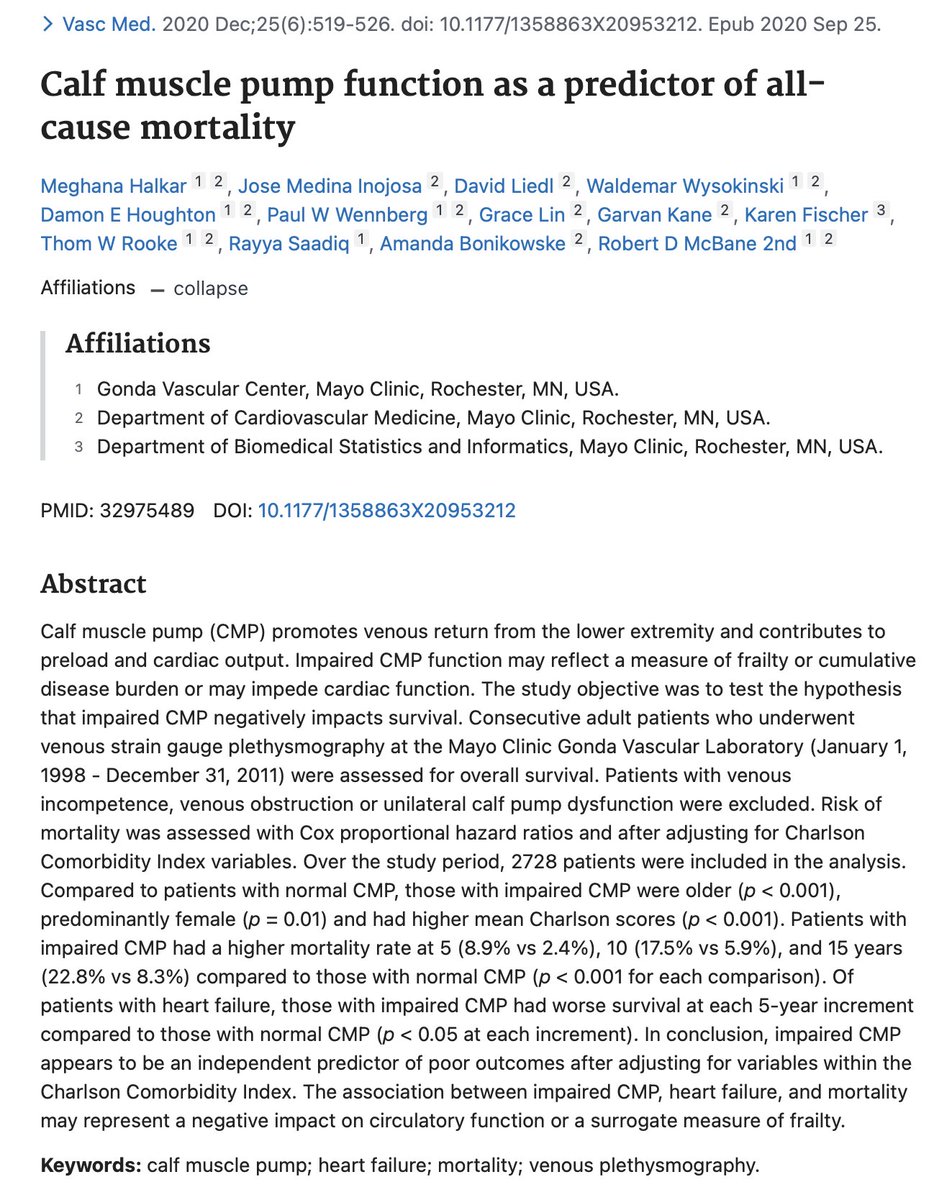 The Mayo Clinic studied 2,728 patients. Those with weak calf pumps had 8.9% mortality at 5 years. Those with strong calf pumps? Just 2.4%. That's nearly 4X higher death risk from ignoring one muscle. Yet 90% of people let their soleus "go to sleep" from too much sitting.
