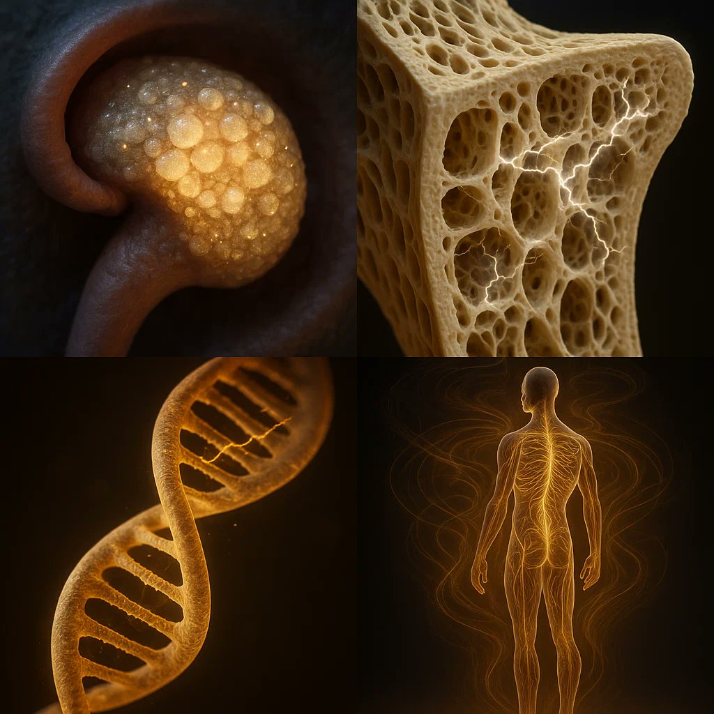 6⃣But here's the REALLY mind-blowing part: Your body is FULL of crystals: ✅Pineal gland: Calcite microcrystals (piezoelectric) ✅Bones: Hydroxyapatite crystals (generate electricity when stressed) ✅DNA: Helical antenna structure (fractal crystal) You're a walking crystal radio.