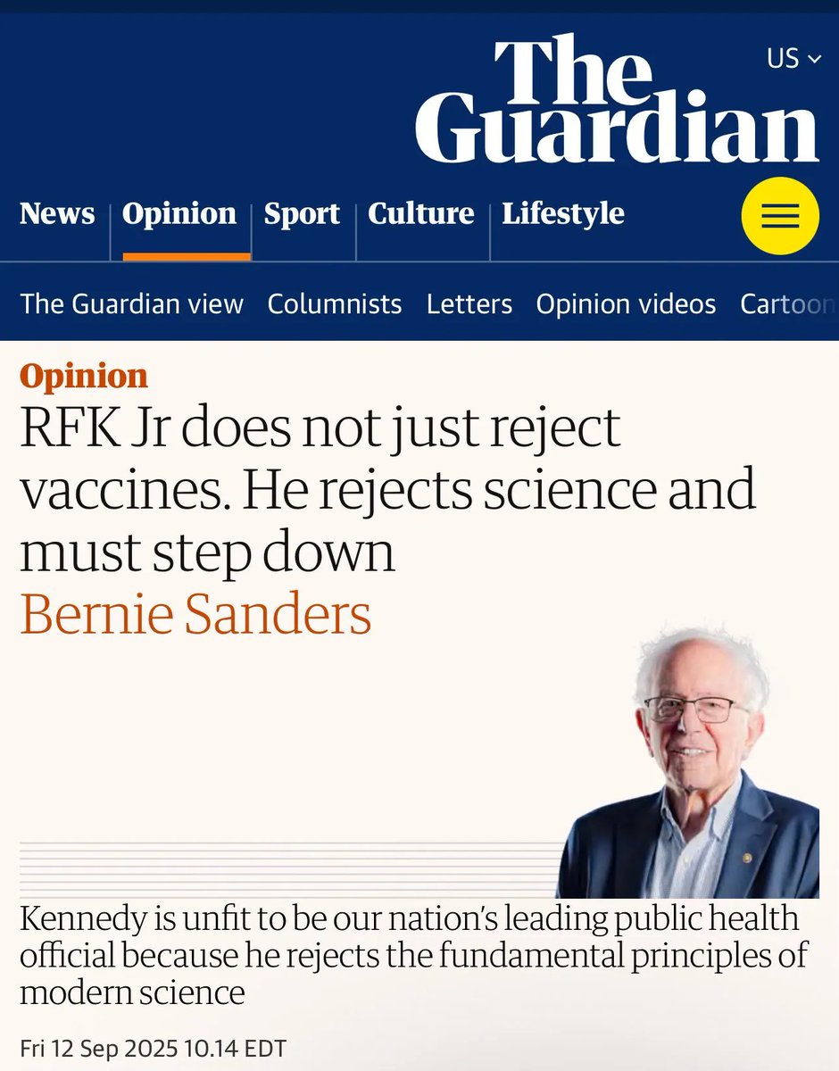 2⃣The coordination is undeniable: ♦️April: BIO plans congressional pressure campaign ♦️August-Sept: Suddenly 1,000+ HHS employees demand resignation ♦️Sept 9: Bernie Sanders holds "Vaccines Work" press conference ♦️Sept 12: Sanders publishes Guardian op-ed calling for RFK's removal