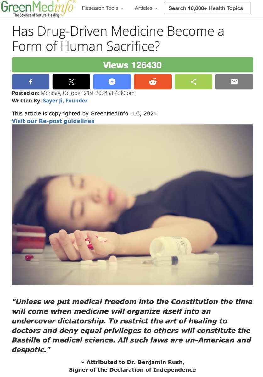 10/ The pharmaceutical industry knows this. But an industry built on treating "infections" with drugs can't profit from understanding that most "illness" is actually the body's successful healing attempt. So the contagion narrative persists. It sells vaccines. It justifies mandates. It generates fear. Instead, there are thousands of natural remedies which focus on providing nutrigenomically rich, miRNA saturated healing substances, which http://GreenMedInfo.com has been indexing for almost two decades: http://www.Greenmedinfo.com