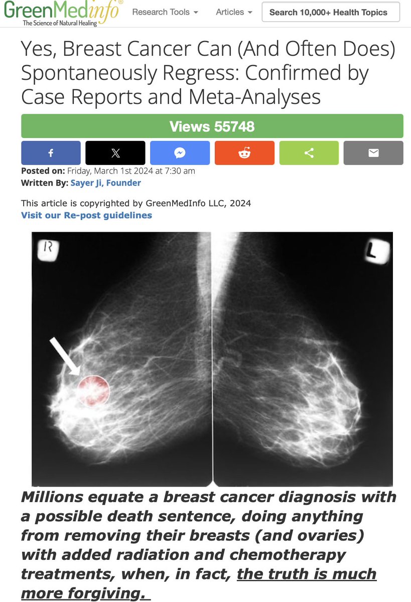 Meanwhile, peer-reviewed studies show: ✅Herniated discs spontaneously disappear ✅Gallstones rarely need surgery ✅Ear infections heal without antibiotics ✅Light therapy beats acne drugs ✅Breathing techniques match antidepressants Your body knows how to heal. Even some cases of breast cancer can regress spontaneously. Learn more: https://greenmedinfo.com/blog/yes-breast-cancer-can-and-often-does-spontaneously-regress-confirmed-case-reports1