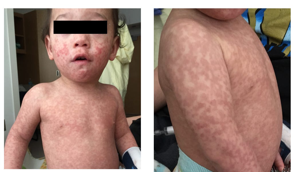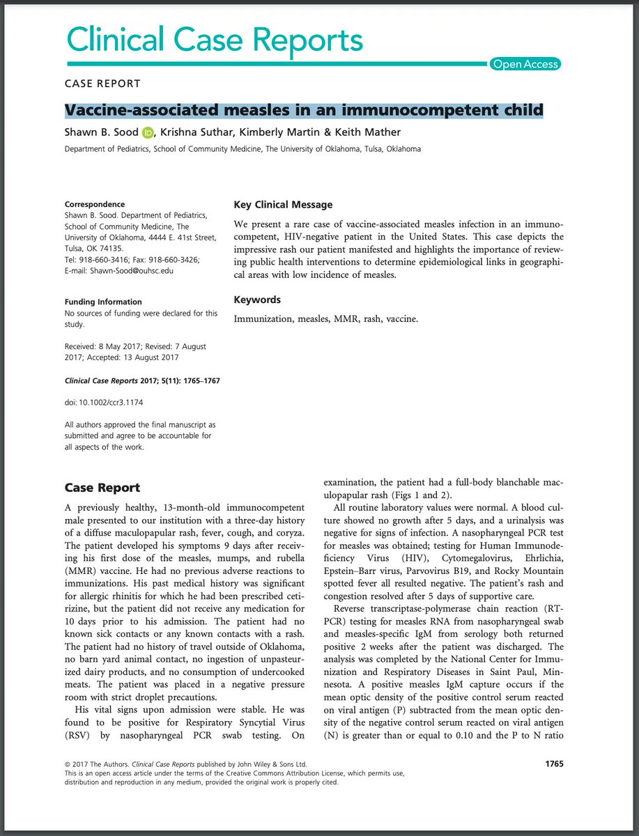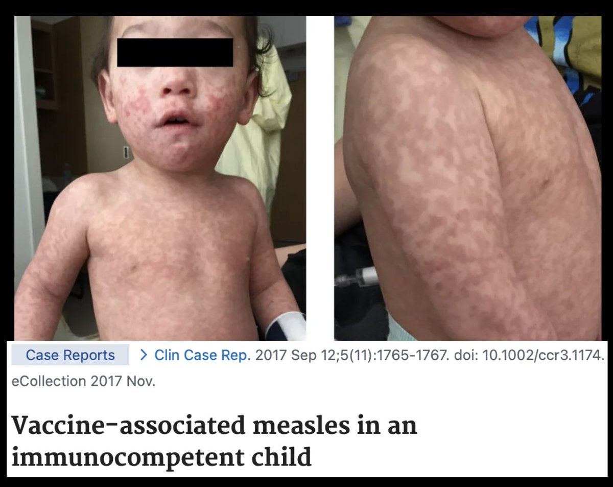 2/7 VACCINE-ASSOCIATED MEASLES (VAM) IS REAL It's rare but documented in peer-reviewed literature: VACCINE-ASSOCIATED MEASLES (VAM) IS REAL It's rare but documented in peer-reviewed literature: ♦️13-month-old boy in Oklahoma: fever, cough, full-body rash 9 days post-MMR ♦️Measles IgM & RNA confirmed positive ♦️No wild-type measles reported in Oklahoma at the time ♦️Highly suspected vaccine-associated measles In Canada, a 2-year-old was initially counted in an outbreak—then confirmed vaccine-strain after genetic testing. 📕Learn more about this case: https://sayerji.substack.com/p/confirmed-mmr-strain-measles-a-real