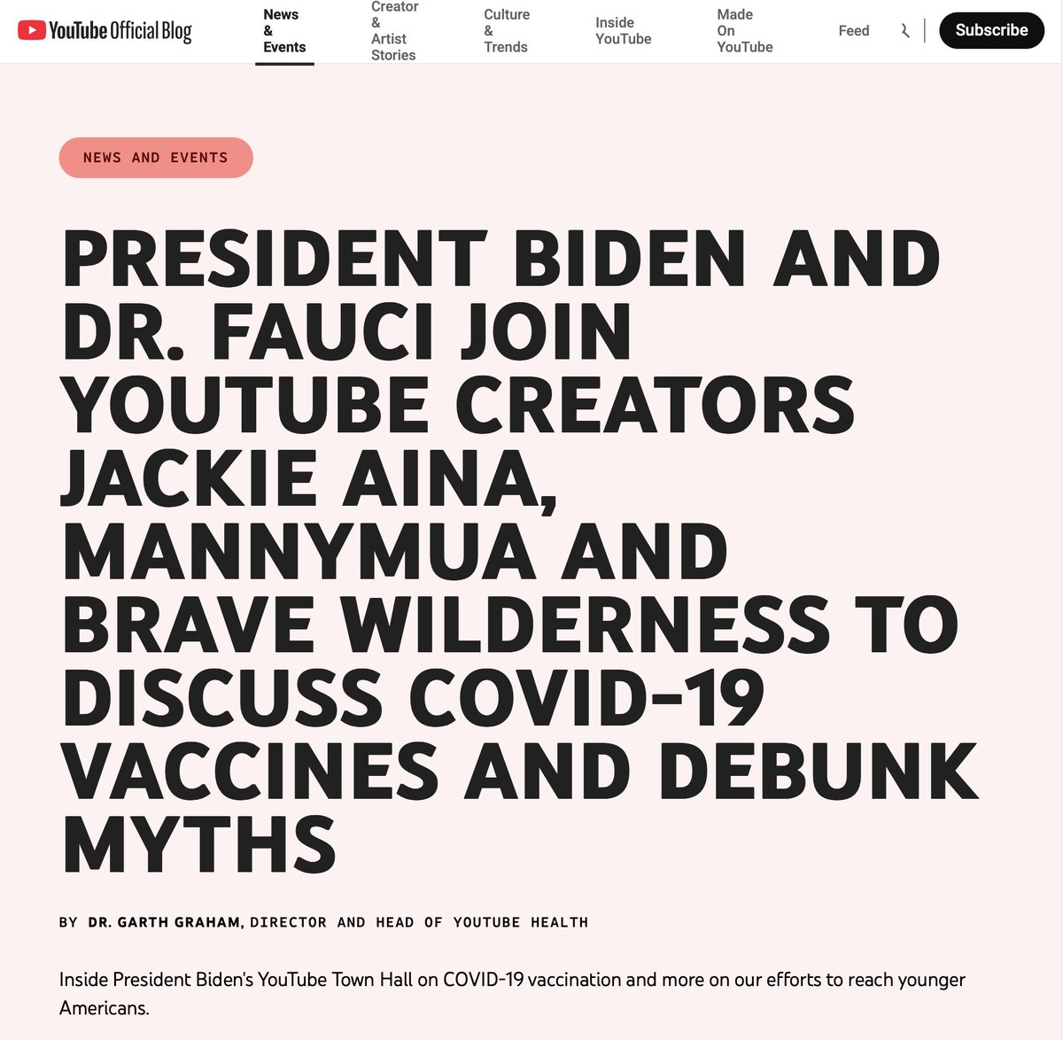 This was the May 2021 meeting where YouTube staged a so-called “Town Hall” with President Biden, Dr. Fauci, and hand-picked influencers. Marketed as “conversation,” it was in truth a state-sanctioned propaganda event: the White House partnered with a private platform that was simultaneously banning dissenting voices, narrowing what Americans could see and hear to only government-approved talking points. This is not free speech — it is viewpoint discrimination directed by the state and enforced by Big Tech. Events like this expose the architecture of a censorship regime where government power merges with corporate control to erase debate under the guise of “public health.” The Constitution forbids the government from outsourcing its censorship to private actors, yet this is exactly what happened. What was presented as outreach was, in fact, an egregious violation of civil liberties — a calculated move in a global campaign to weaponize “disinformation” as a pretext for silencing dissent and manufacturing consent. https://blog.youtube/news-and-events/white-house-youtube-town-hall/?utm_source=chatgpt.com