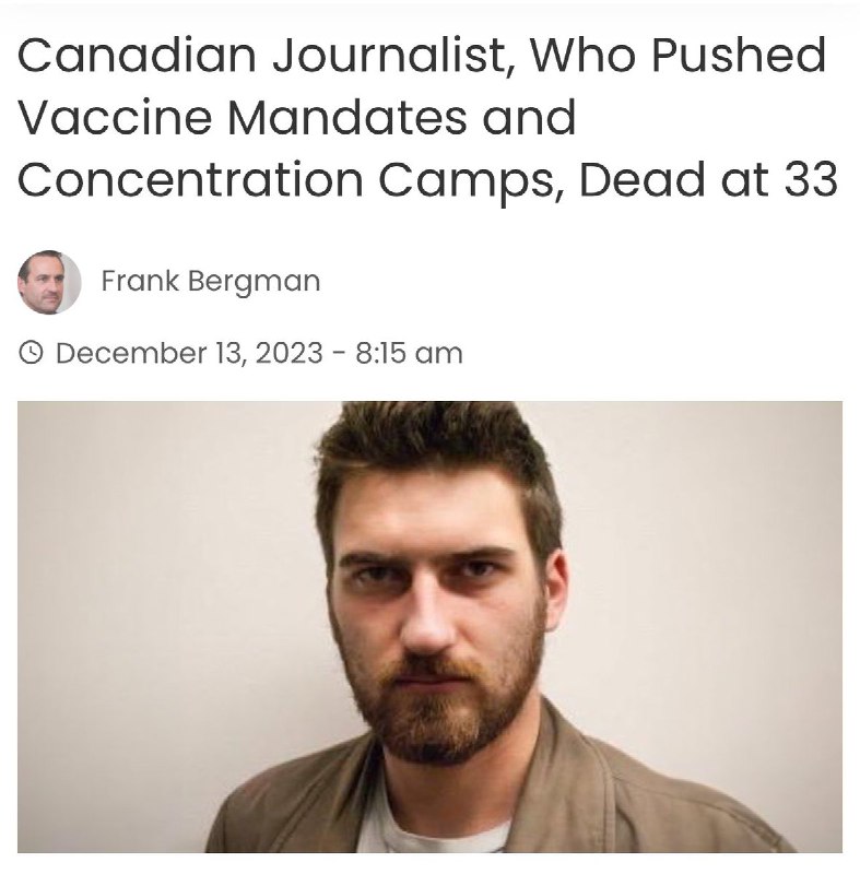 Le karma frappe fort ces temps-ci... Un journaliste qui prônait l'envoi dans des camps de concentration des personnes non vaccinées décède subitement à l'âge de 33 ans : « Ian Vandaelle est décédé après avoir été hospitalisé et « déclaré mort neurologiquement », a révélé sa famille. Vandaelle était une journaliste économique qui travaillait comme reporter et rédacteur au Financial Post. Il a également été producteur chez BNN Bloomberg pendant plus d’une décennie. Vandaelle a plaidé en faveur de passeports et de mandats vaccinaux et a appelé au licenciement de toute personne refusant les injections. Il a également suggéré que les personnes non vaccinées soient arrêtées et emmenées dans des camps de concentration.» Journalist who advocated that the unvaccinated be put in concentration camps dies suddenly at the young age of 33 : “Ian Vandaelle has died after being hospitalized and “declared neurologically dead,” his family revealed. Vandaelle was a business journalist who worked as a reporter and editor at the Financial Post. He was also previously a producer at BNN Bloomberg for over a decade. Vandaelle advocated for vaccine passports and mandates and called for the firing of anyone who refused the injections. He also suggested that unvaccinated people should be arrested and taken away to concentration camps.”