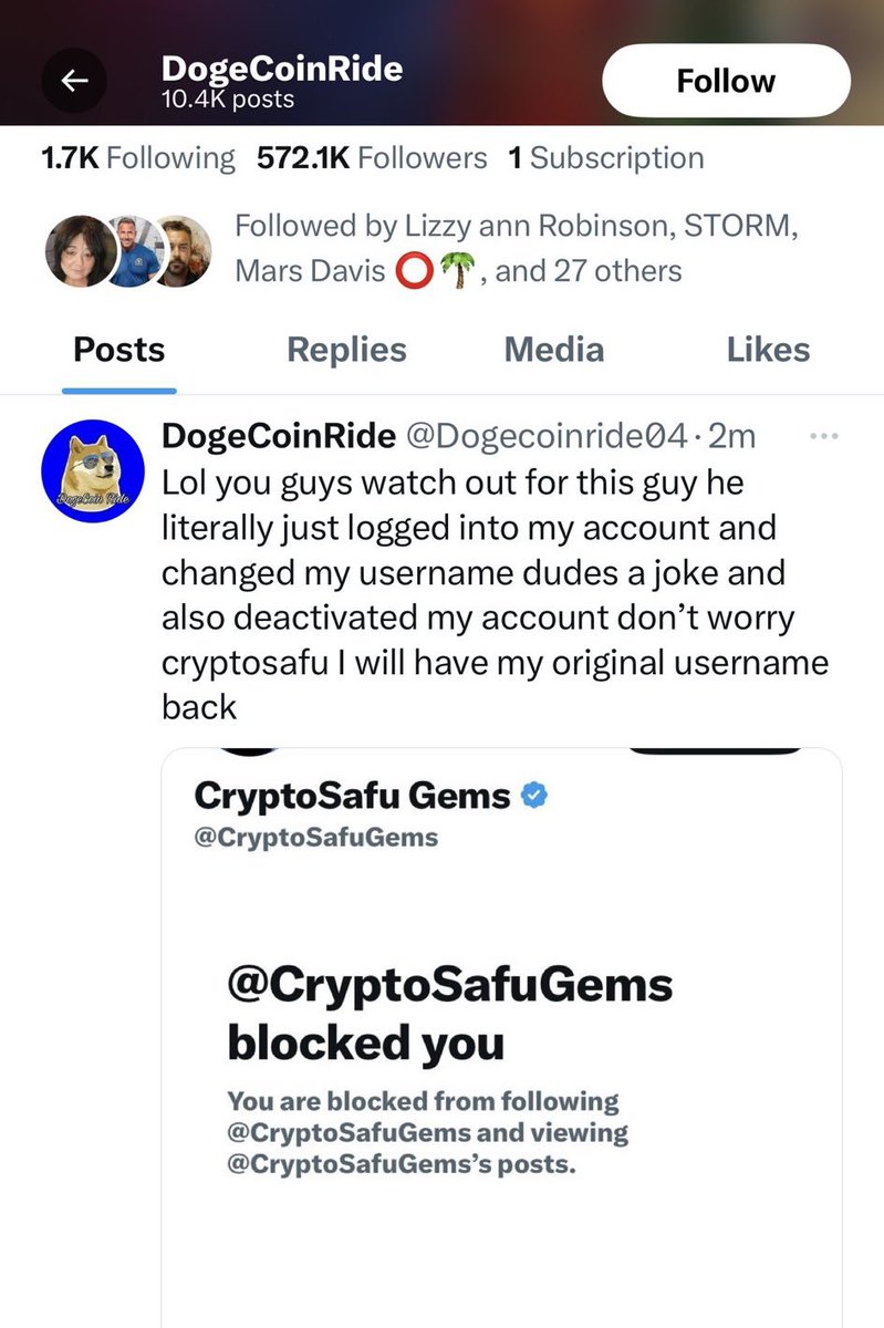 🚨SCAMM3R UPDATE🚨 The original DogeCoinRide account that scamm3d me changed his username to @Dogecoinride04 AND created a new identity for his original username @Dogecoinride. It’s the old account/username swap right before your eyes. The following accounts are all controlled by the original SCAMM3R, DOGECOINRIDE: @Dogecoinride04 @Dogecoinride @XGlobalMedia @CryptoSafuGems ⚠️DO NOT ASSOCIATE WITH EITHER OF THESE ACCOUNTS! The last two usernames were created to give credibility to the notion that Dogecoinride was hacked, which we know for sure is pure fiction. Unfortunately (for him), he was unaware that all of one’s alts are linked on X’s internal systems. Make no mistake—these are run by the same person. Again, thank you to the team at X. Just stop the sc@m, bro. My intel is years ahead of your scamm!ng abilities. @lindayaX @elonmusk @Safety @zachxbt