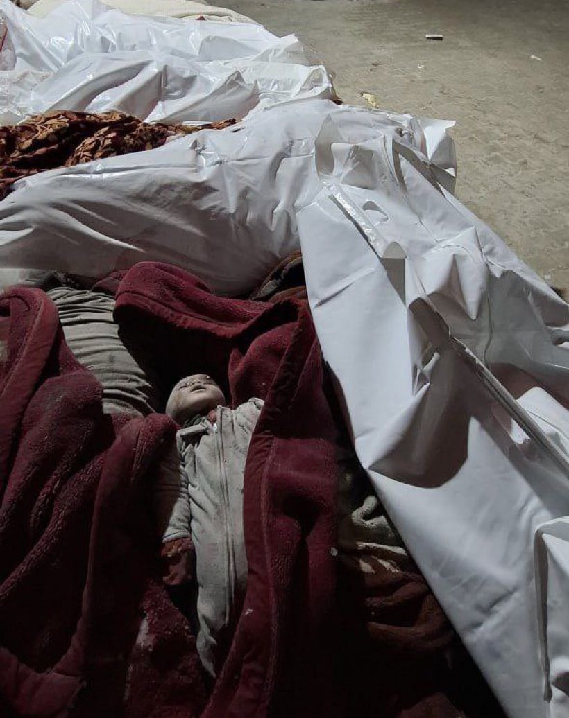 The bodies of Palestinian adults & children are piling up outside Al-Aqsa Hospital morgue in central Gaza due to today’s intense israeli bombing https://t.co/LfaMq4tsNe