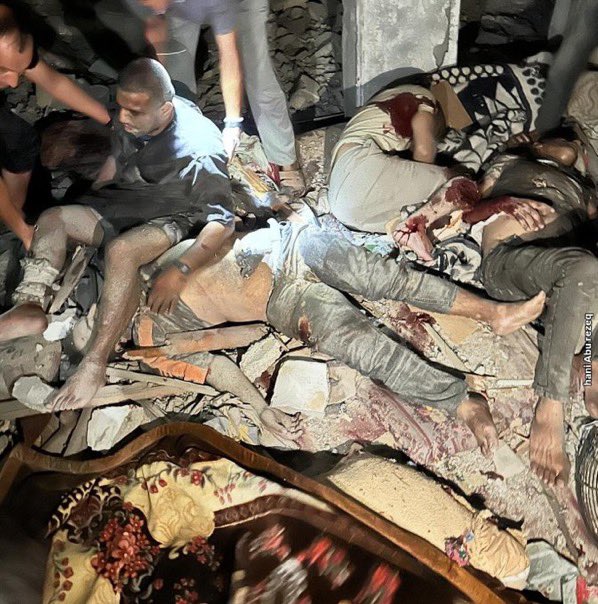 Horrifying scenes unfold after the israeli massacre on a residential apartment in the busy Sheikh Radwan neighbourhood in northern Gaza https://t.co/Ph4AQwB10T