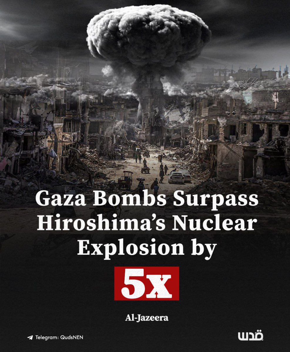 An official report reveals that israelis dropped over 85,000 tonnes of bombs on Gaza exceeding the power of the Hiroshima bomb 5 times https://t.co/0eeAtzgyDA