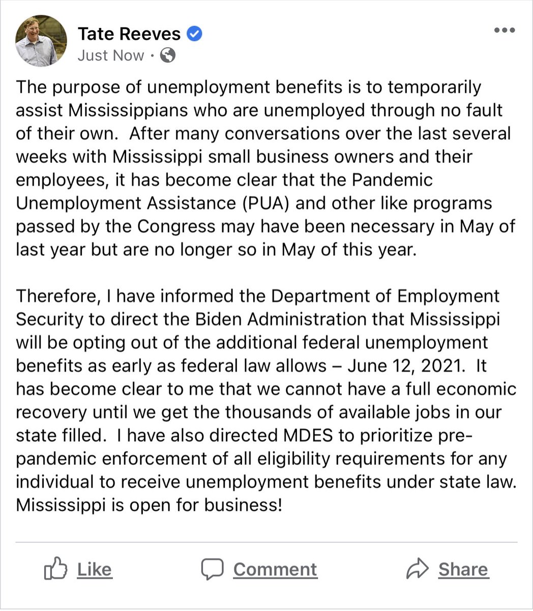 It has become clear to me that we cannot have a full economic recovery until we get the thousands of available jobs in our state filled. https://t.co/PHGU27c9Mj