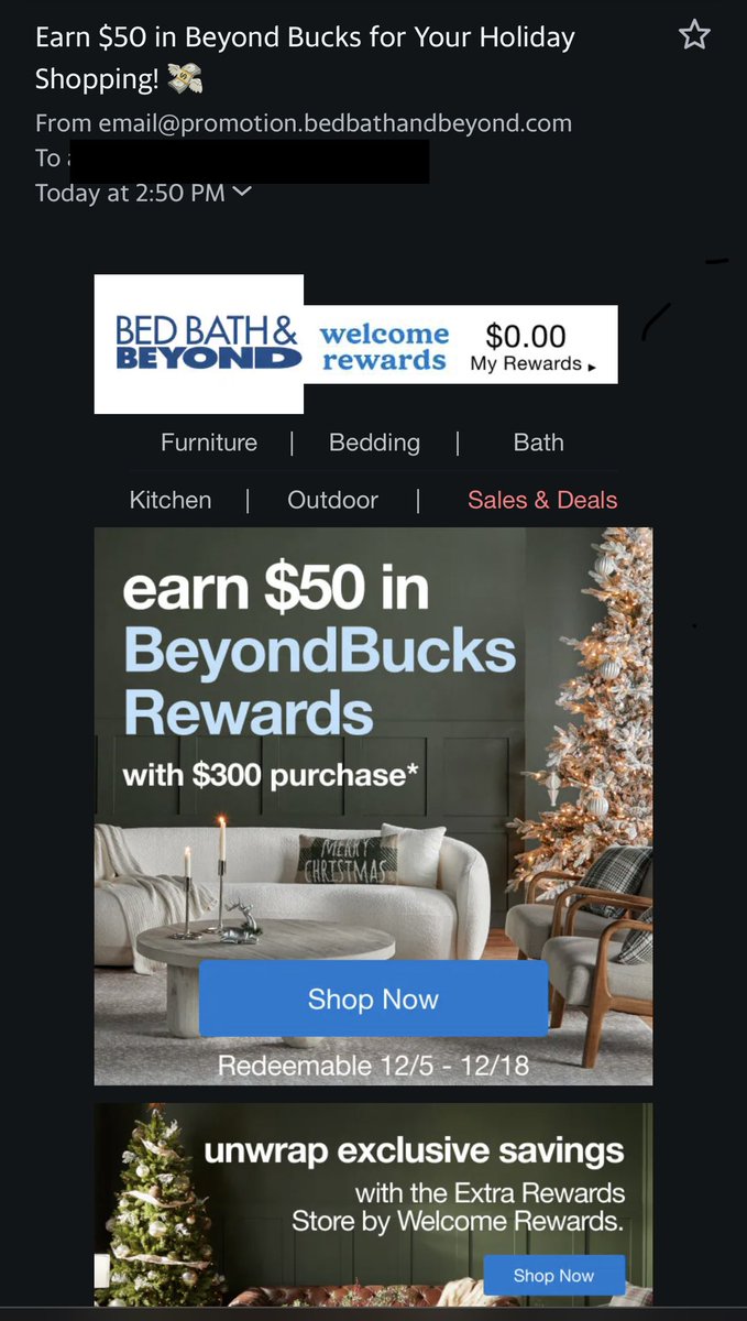 Just got this email about some holiday $BBBY “BeyondBucks.” The irony…is not lost on me. 🫡🥹 https://t.co/rzCkY66S67