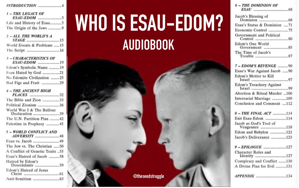 🔊 Bible Prophecy & Racial Holy War 📚 Who is Esau—Edom? 🕙 4 hours—39 minutes "This is the hardest teaching in the bible explaining the eternal struggle between J—ws and the Adamic Race—the work explains how Jesus Christ prophesied a final racial holy war in the last days."